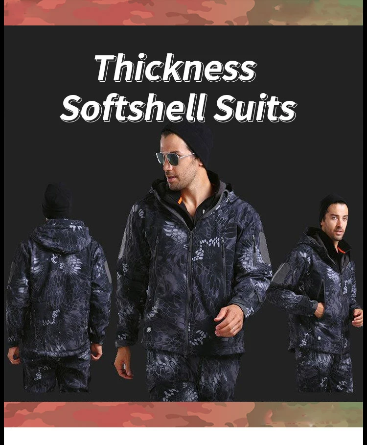 Men's warm soft shell winter military tactics shark skin storm jacket velvet hiking suit fishing two-piece sportswear