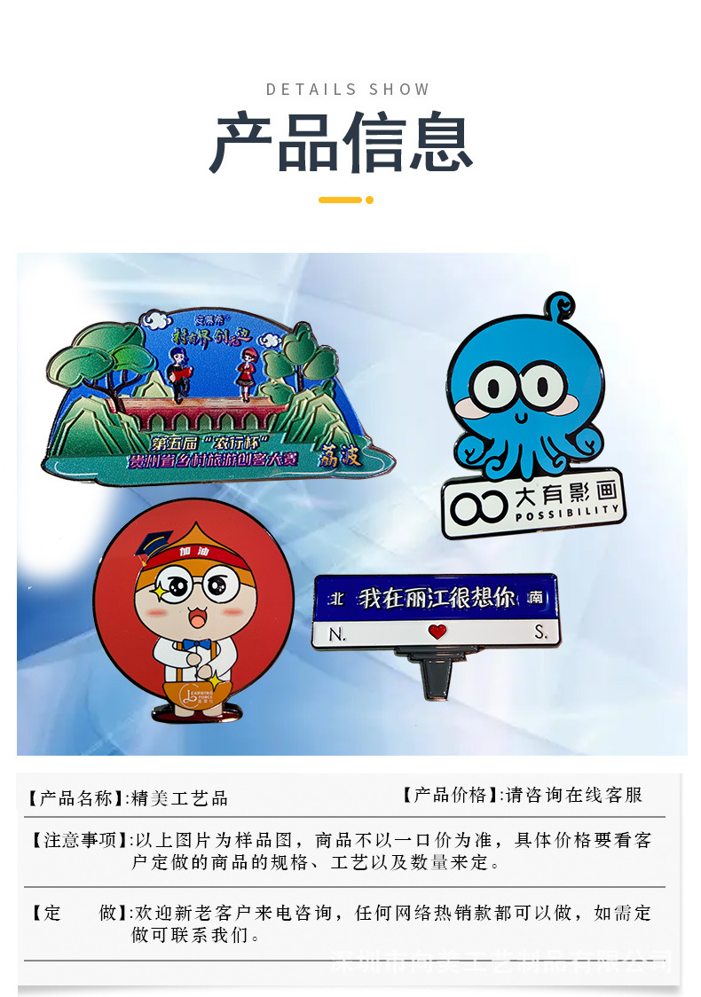 Nam châm tủ lạnh bằng kim loại tùy chỉnh du lịch văn hóa và quà tặng kỷ niệm sáng tạo trang trí LOGO cá nhân hóa nam châm cứng hợp kim kẽm tùy chỉnh là lựa chọn lý tưởng cho không gian công cộng, sân vườn hoặc khu đô thị. Sản phẩm giúp nâng cao hình ảnh chuyên nghiệp và sạch đẹp cho môi trường sống.
