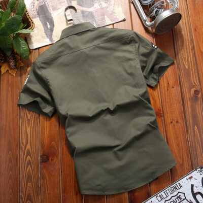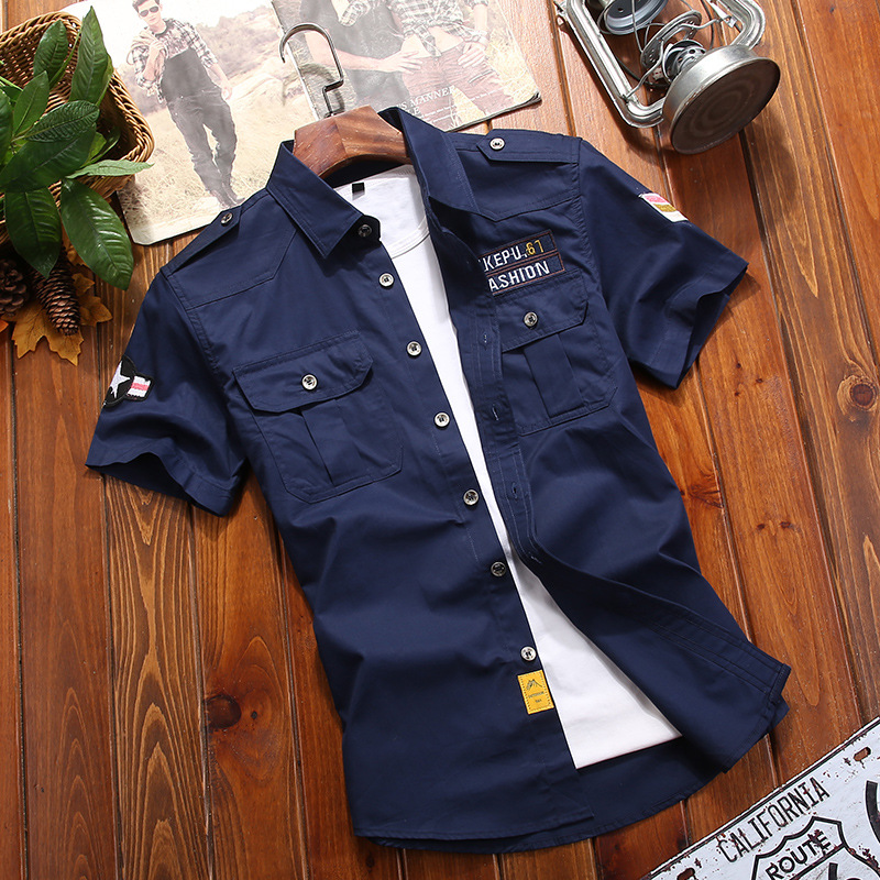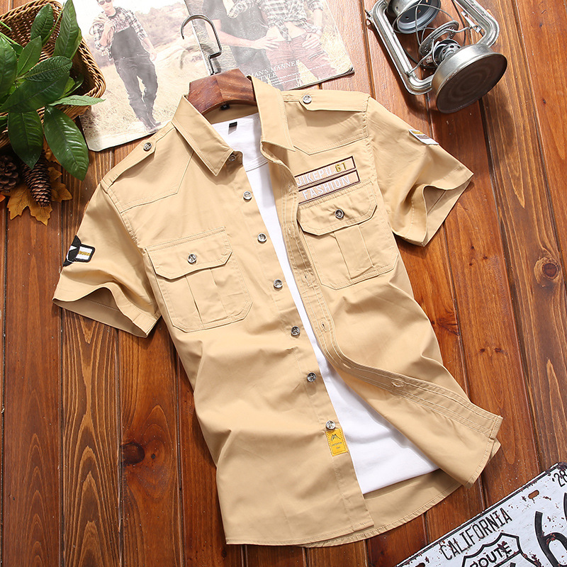 Nam cỡ lớn mùa hè mới áo sơ mi ngắn tay cotton trẻ trung phong cách quân đội thời trang giản dị phù hợp với tất cả các trận đấu áo sơ mi áo khoác