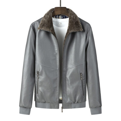 Nam Cổ Lông Áo Khoác Da Nam Hợp Thời Trang Dày Trang Ve Áo Áo Khoác Da Áo Khoác Mùa Đông Slim Xe Máy Nam