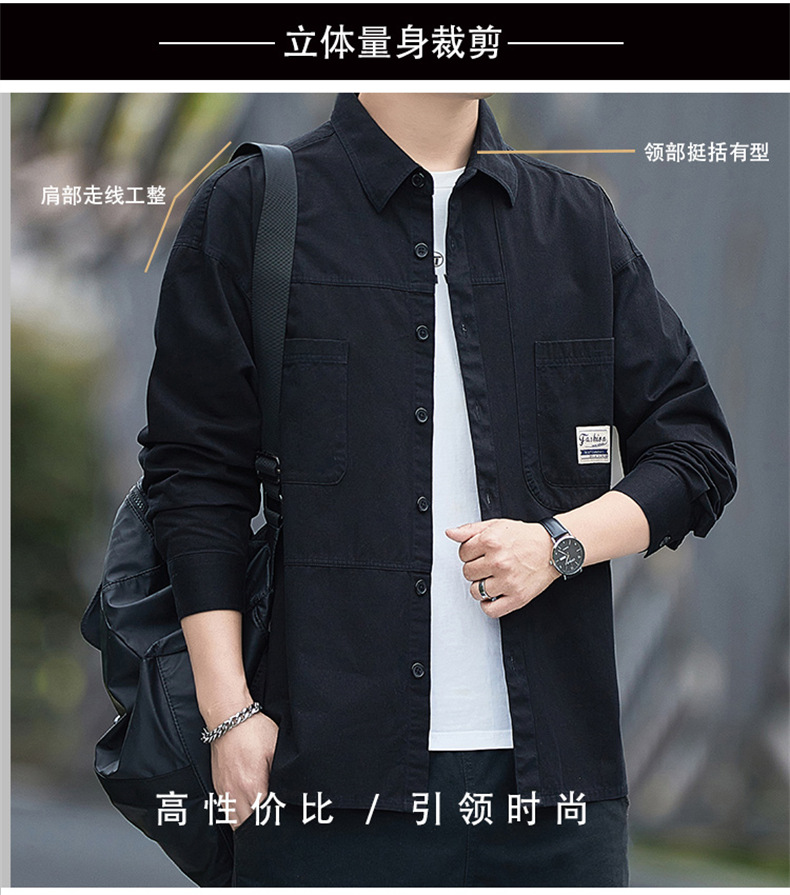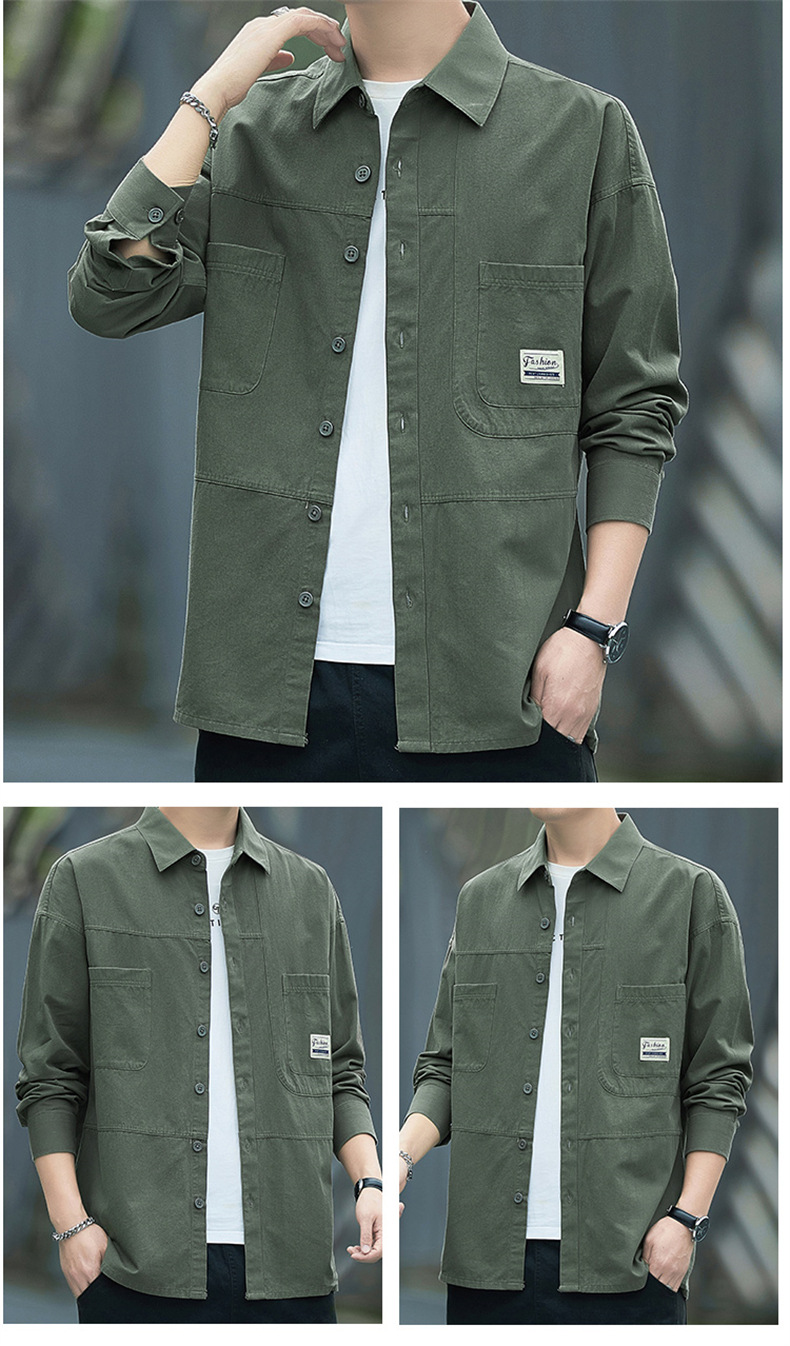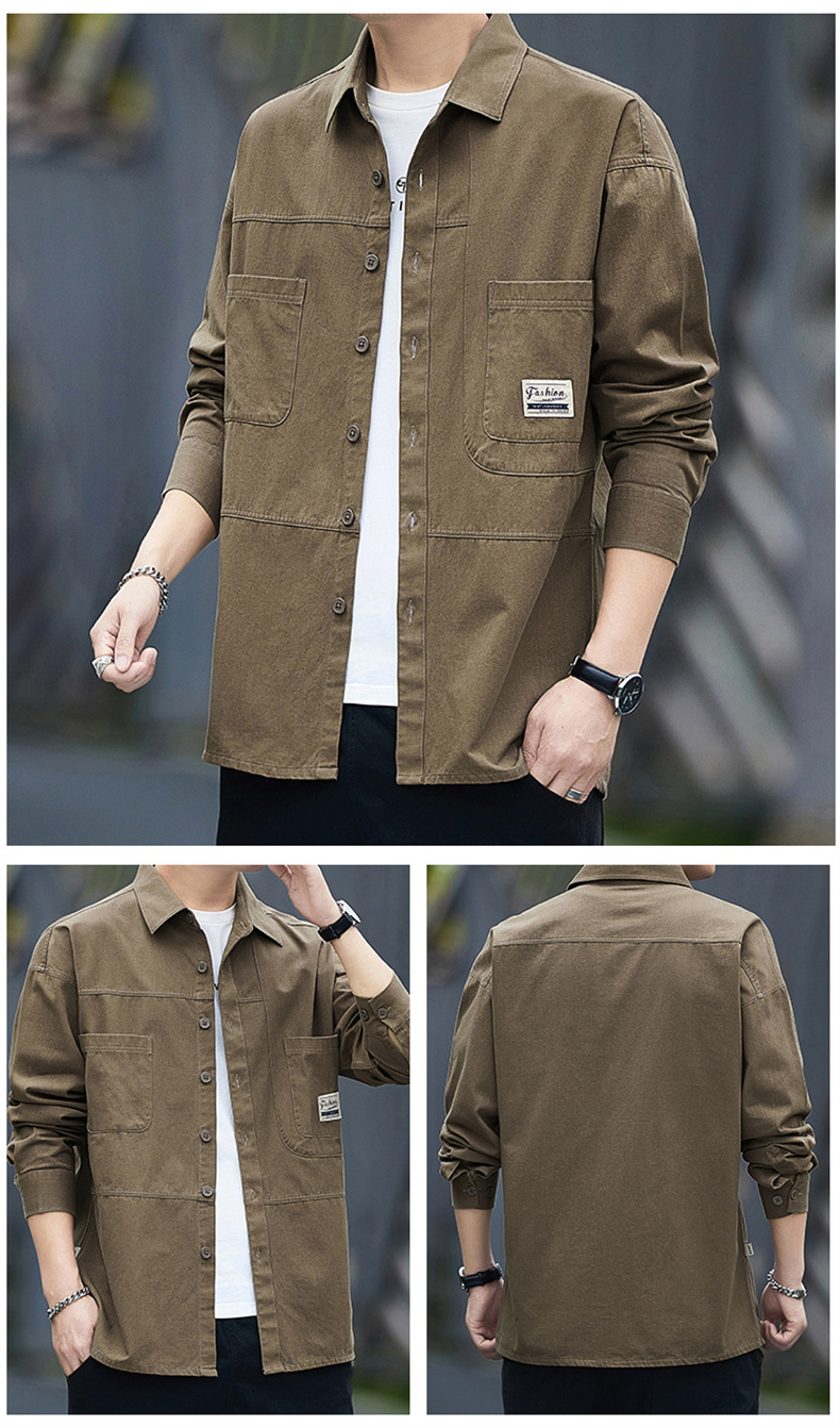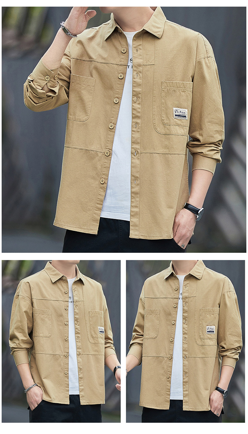 Nam Dài Tay Áo Sơ Mi Mùa Xuân Và Mùa Thu 2023 Dụng Cụ Dáng Rộng Cardigan Top Quần Áo Cotton Nguyên Chất Ve Áo Sơ Mi Áo Khoác Nam