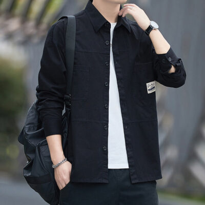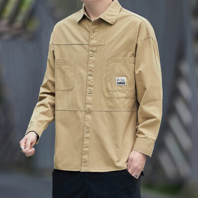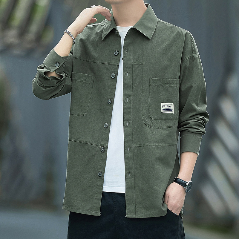 Nam Dài Tay Áo Sơ Mi Mùa Xuân Và Mùa Thu 2023 Dụng Cụ Dáng Rộng Cardigan Top Quần Áo Cotton Nguyên Chất Ve Áo Sơ Mi Áo Khoác Nam