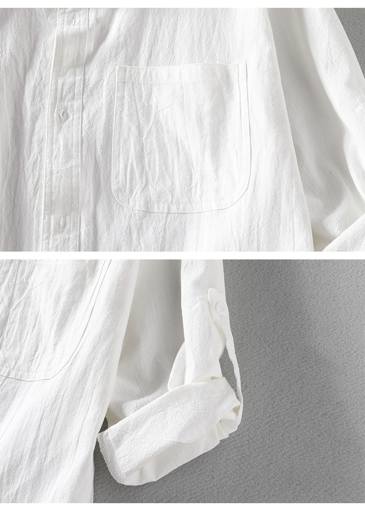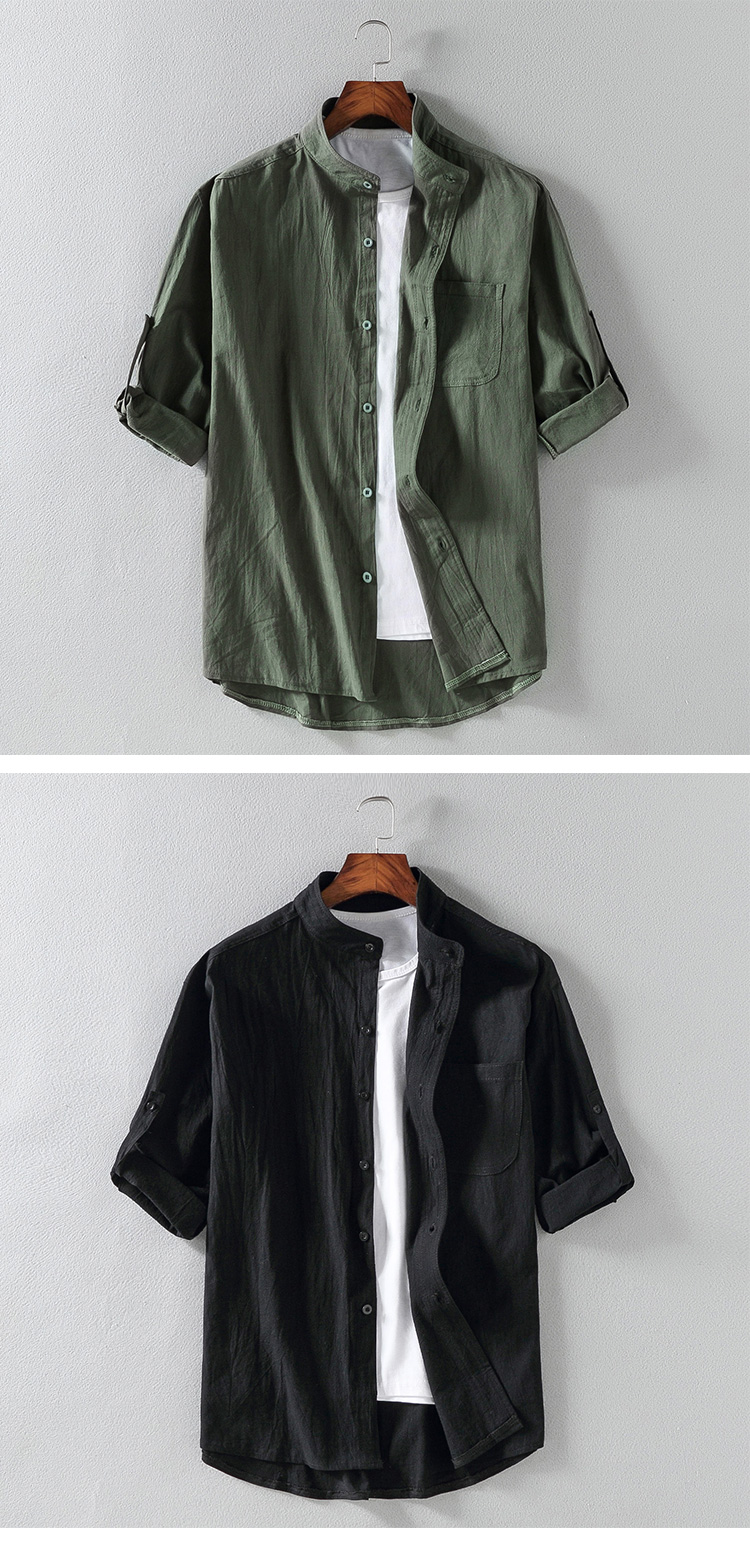 Nam giới Nhật Bản cổ điển vải lanh ngắn tay áo sơ mi nam thủy triều thương hiệu ba phần tư tay áo người béo cộng với kích thước Áo sơ mi xu hướng Hàn Quốc