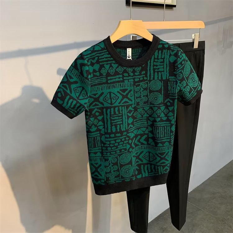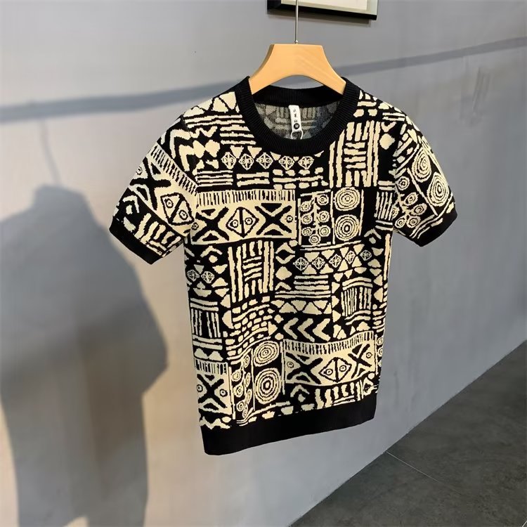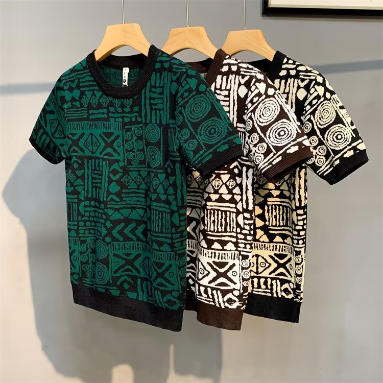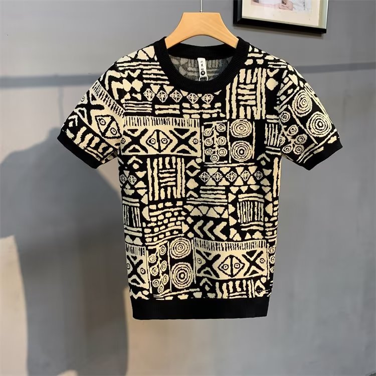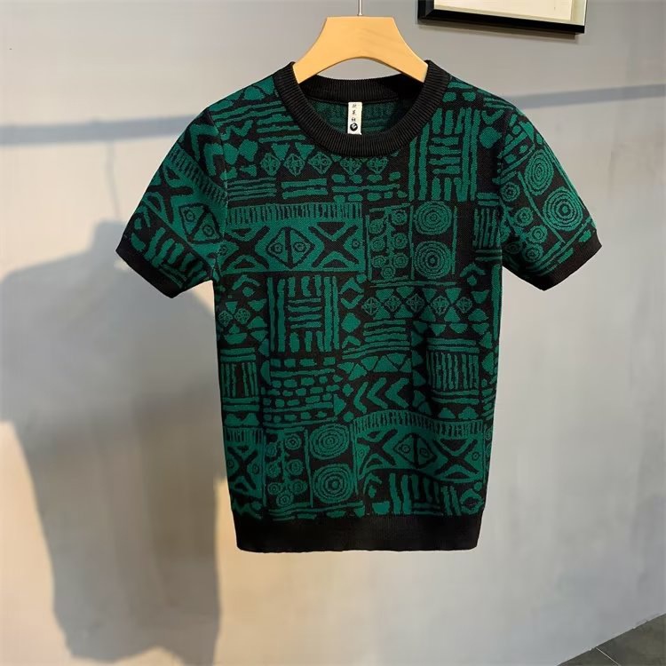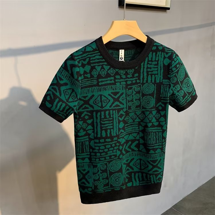 Nam Ice Silk Dệt Kim 2023 Văn Học Thanh Niên Thanh Niên Phổ Biến Màu Ôm Cổ Tròn Áo Thun Cổ Áo Thun Nữ Tay Ngắn