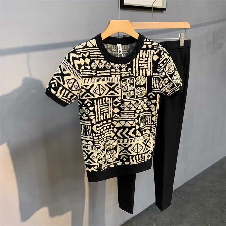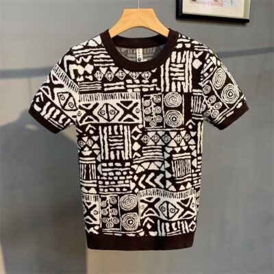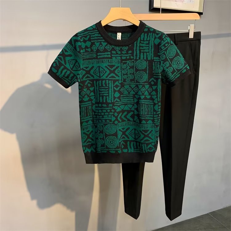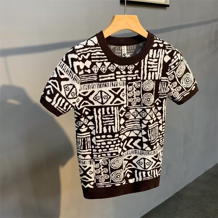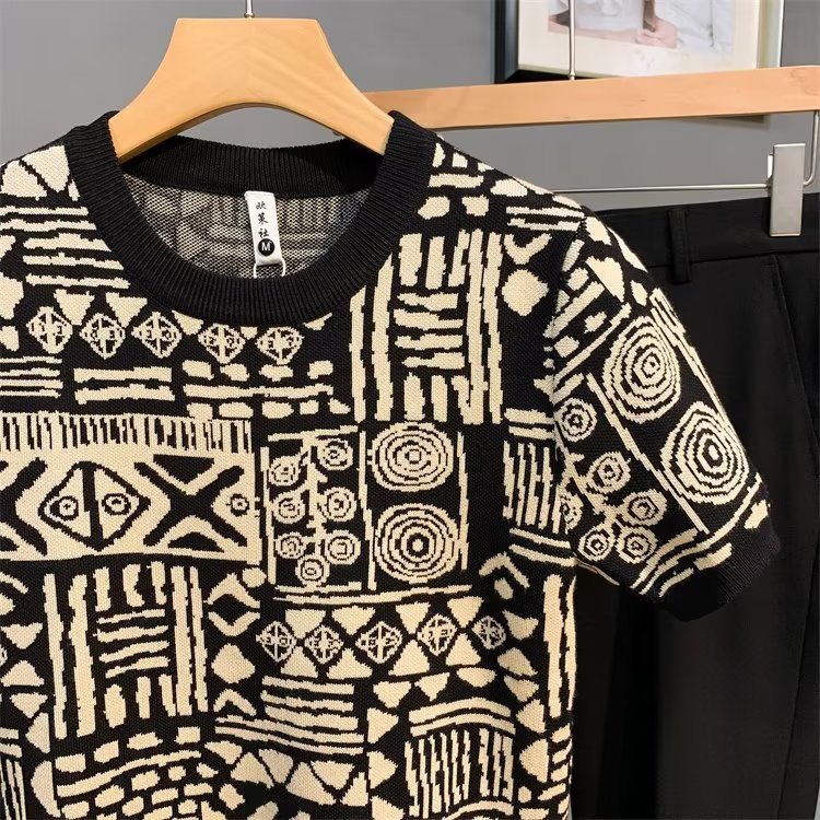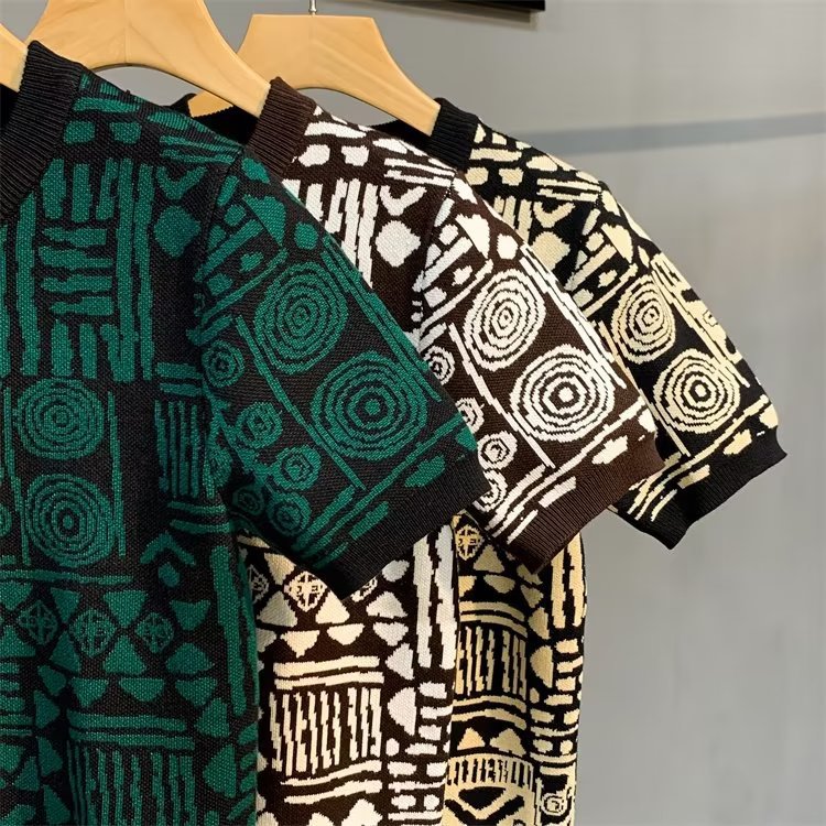 Nam Ice Silk Dệt Kim 2023 Văn Học Thanh Niên Thanh Niên Phổ Biến Màu Ôm Cổ Tròn Áo Thun Cổ Áo Thun Nữ Tay Ngắn