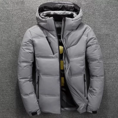 Men Red Down Jacket 2023 New Winter Men’s Coat Windproof Removable Cap Parka Solid Color Outdoor Casual Hooded Overcoat Clothes