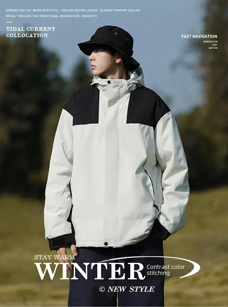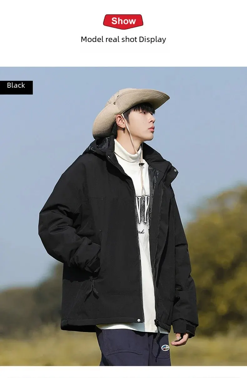• Three-Resistant Material :Crafted from three-resistant cotton, this men’s jacket offers superior durability and warmth, perfect for winter outdoor activities.