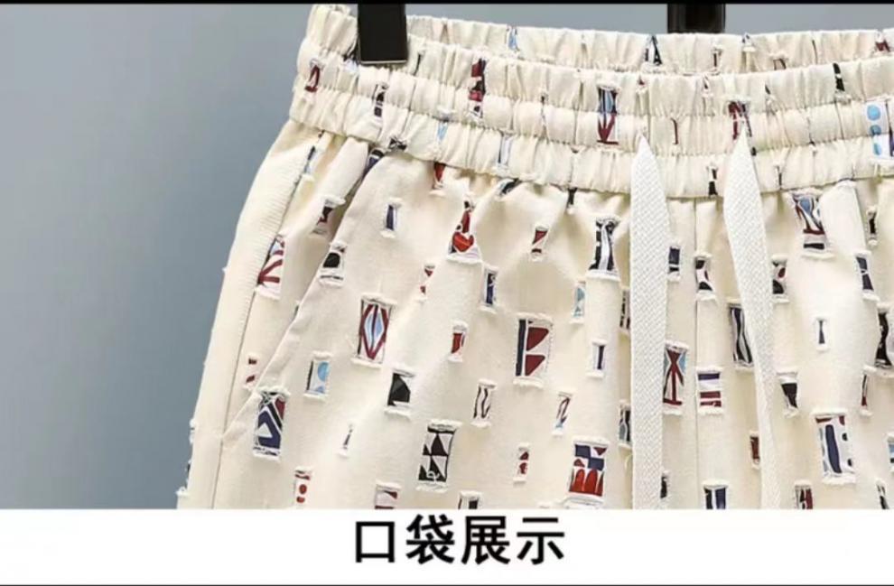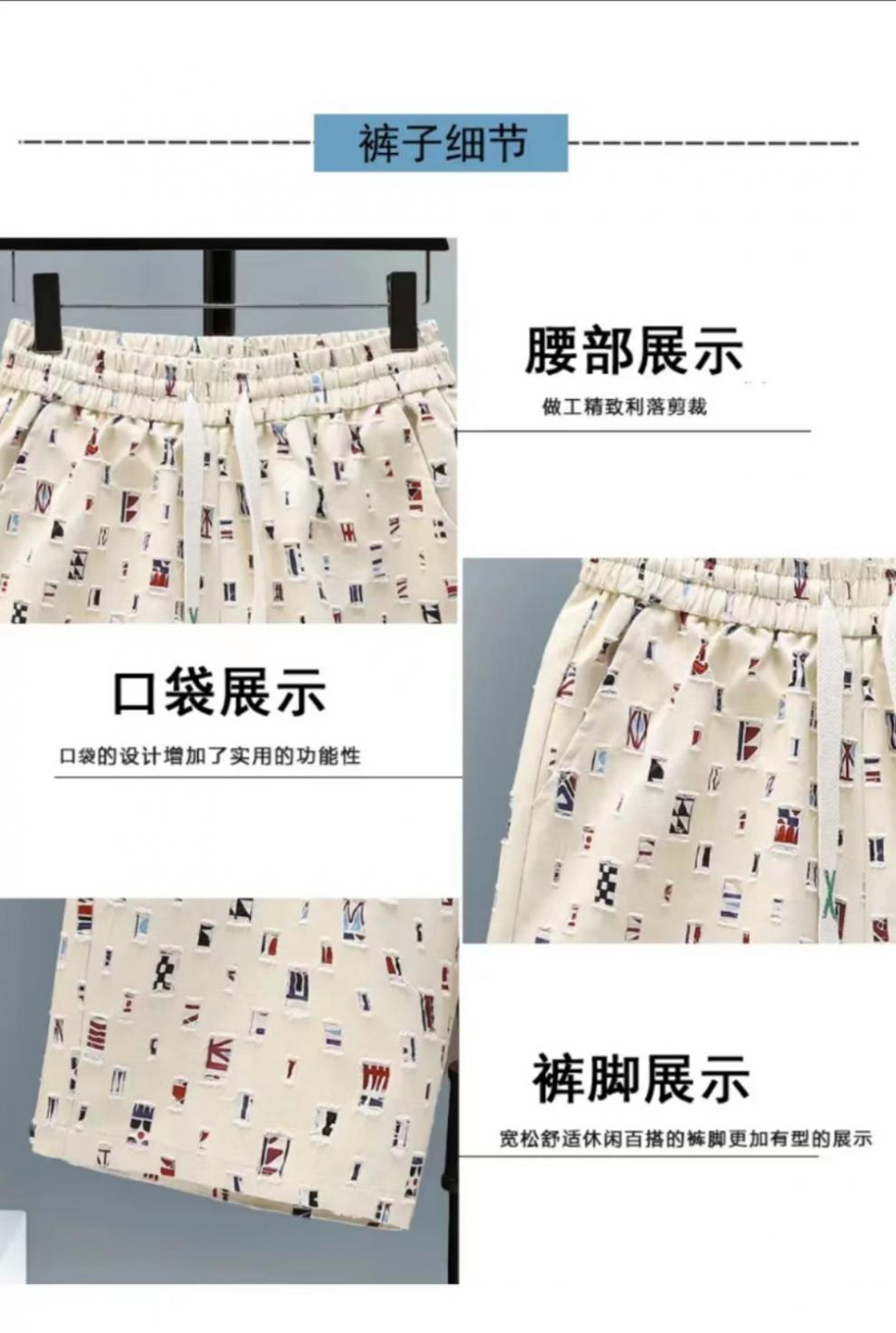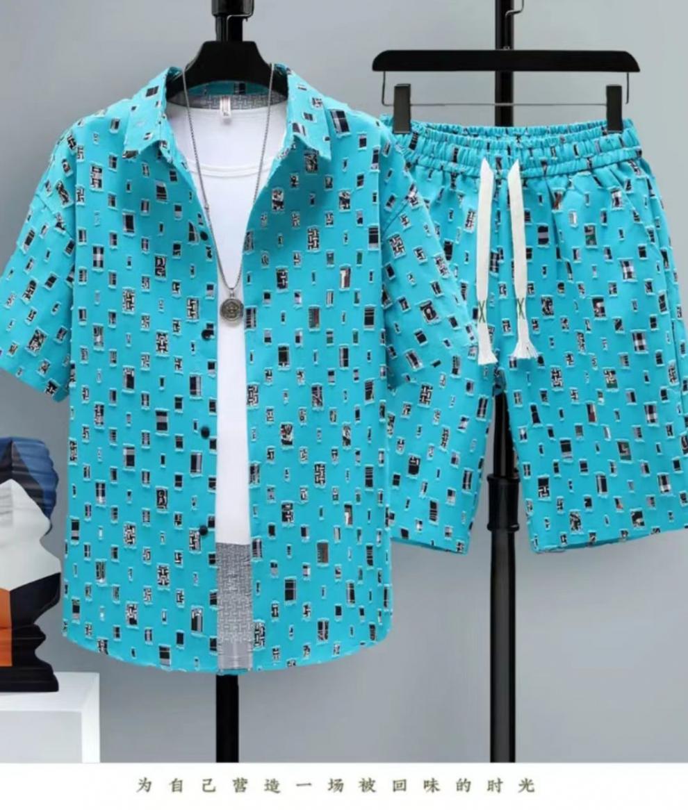 Nam mùa hè thời trang mới sơ mi ngắn tay có lỗ phổ biến quần short phù hợp với hợp thời trang lưới đẹp trai bùng nổ màu đỏ