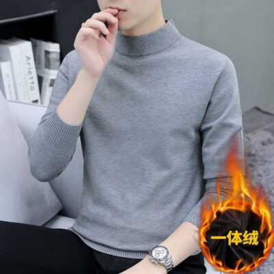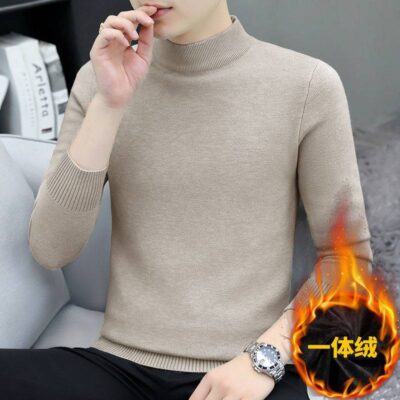 Nam Nhung Áo Len Dày Dặn Thu Đông 1 Nhung Nửa Cổ Cao Đáy Áo Len Dệt Kim Màu Vải Lanh Ấm Áp mỏng