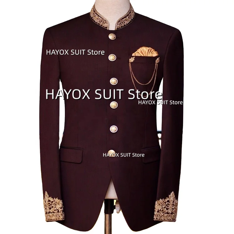 Nam Phù Hợp Với Áo Khoác 2022 Slim Fit Cổ Áo Đứng Ngực Đơn Thêu Kinh Doanh Chính Thức Cưới Phù Rể Hứa TUXEDO Áo