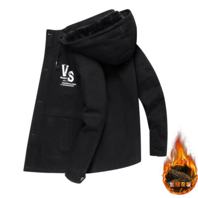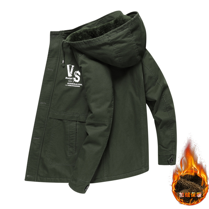 Nam Size Lớn Áo Khoác Cotton Nam Quần Áo Trung Chiều Dài Nhung Dày Phối Dụng Cụ Áo Khoác Nam quần Áo