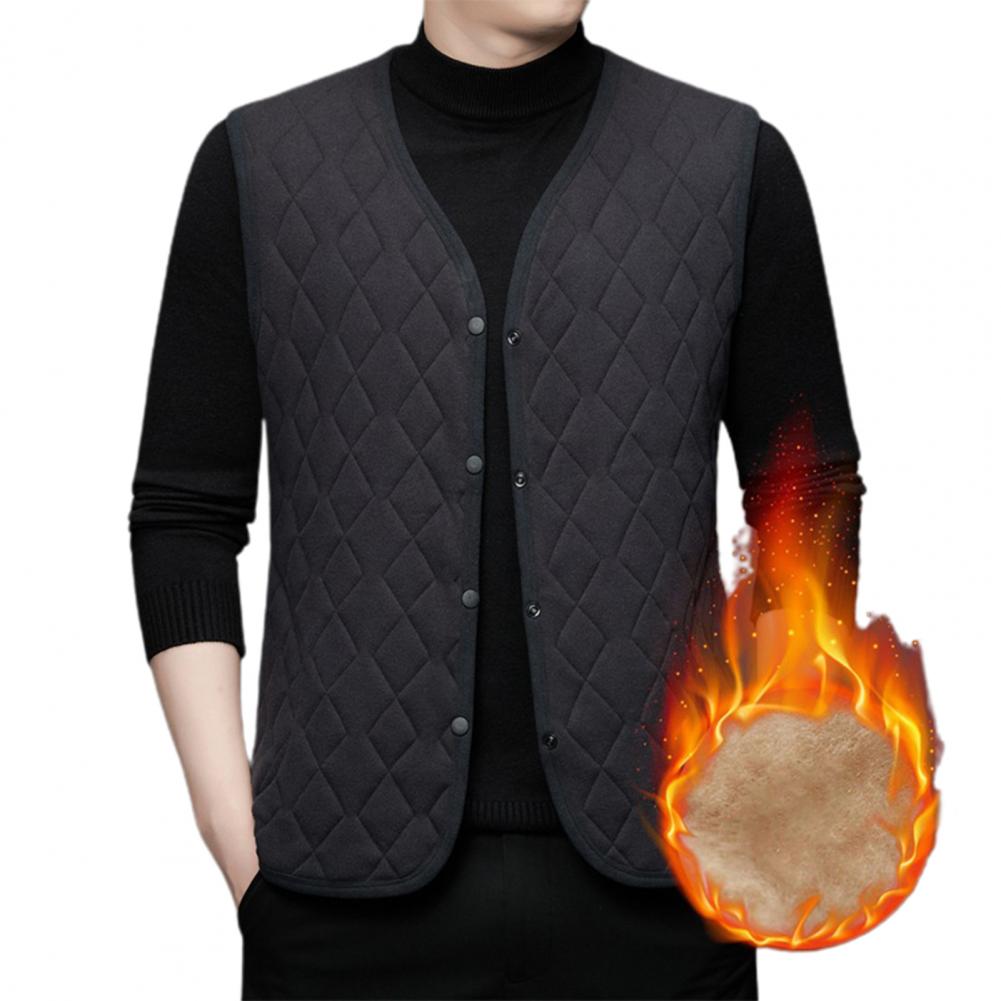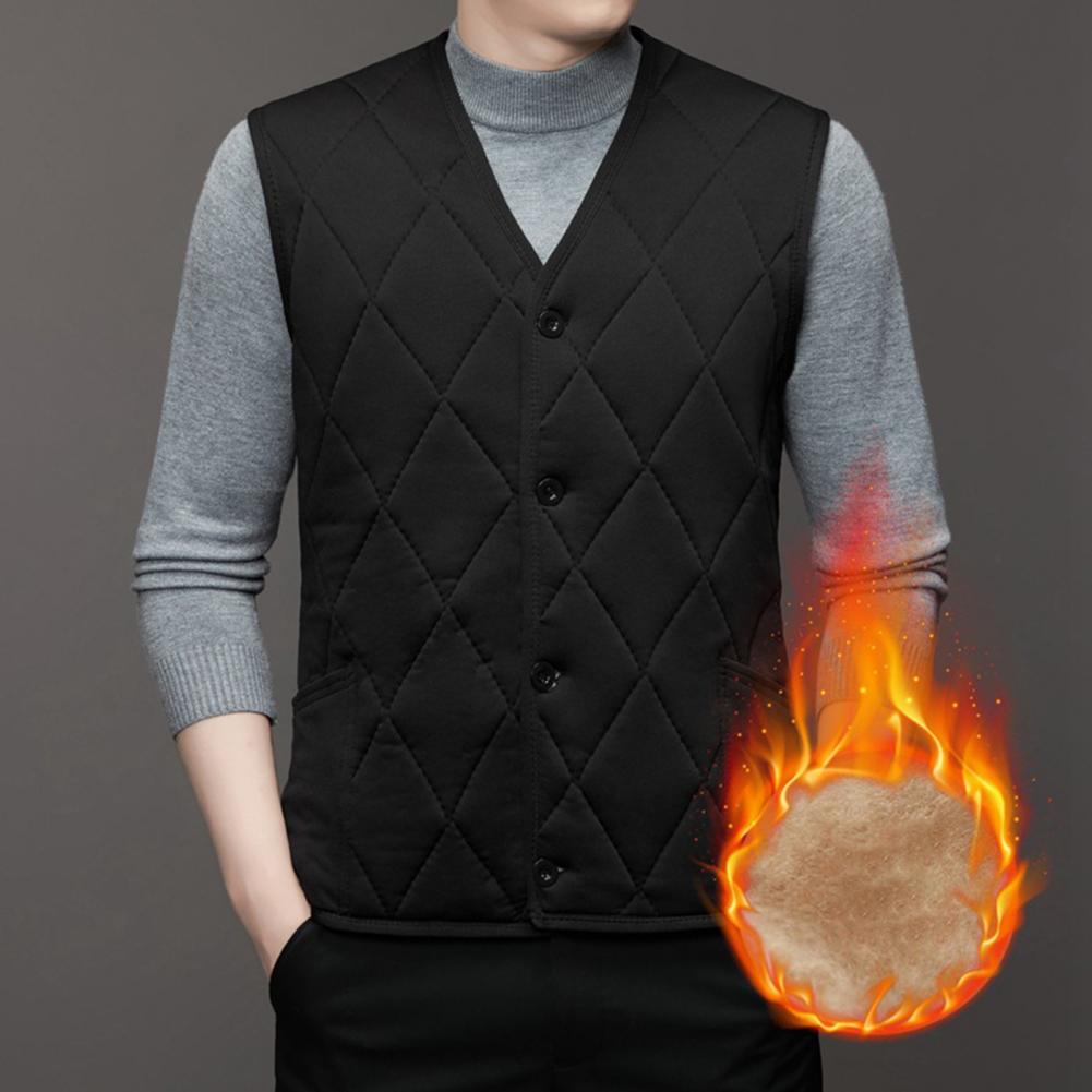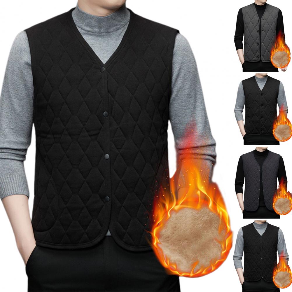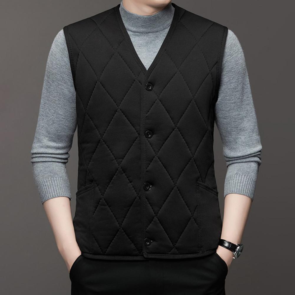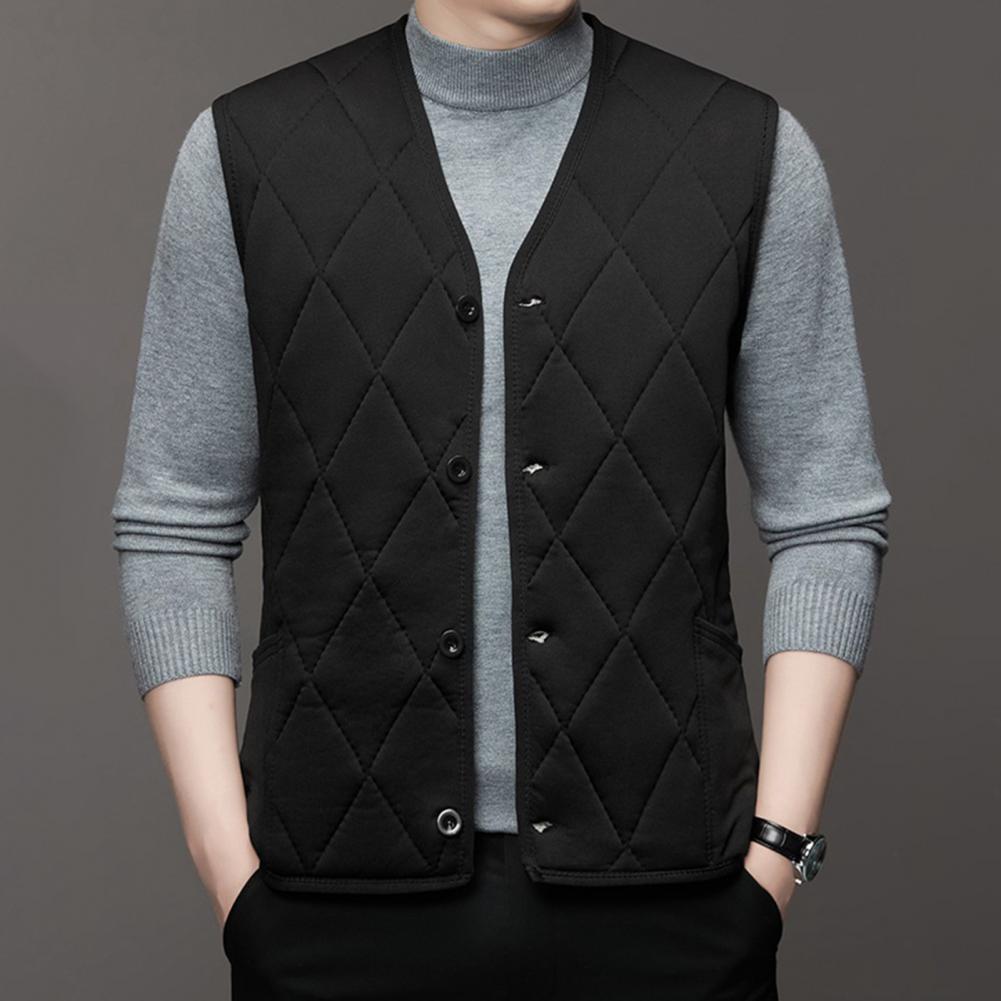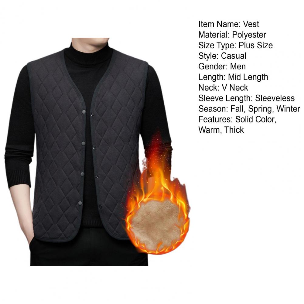 Men Fall Winter Vest Single-breasted Sleeveless Padded Solid Color Cardigan Solid Color Plus Size Warm Thick Cardigan Mid Length Waistcoat Men Coat