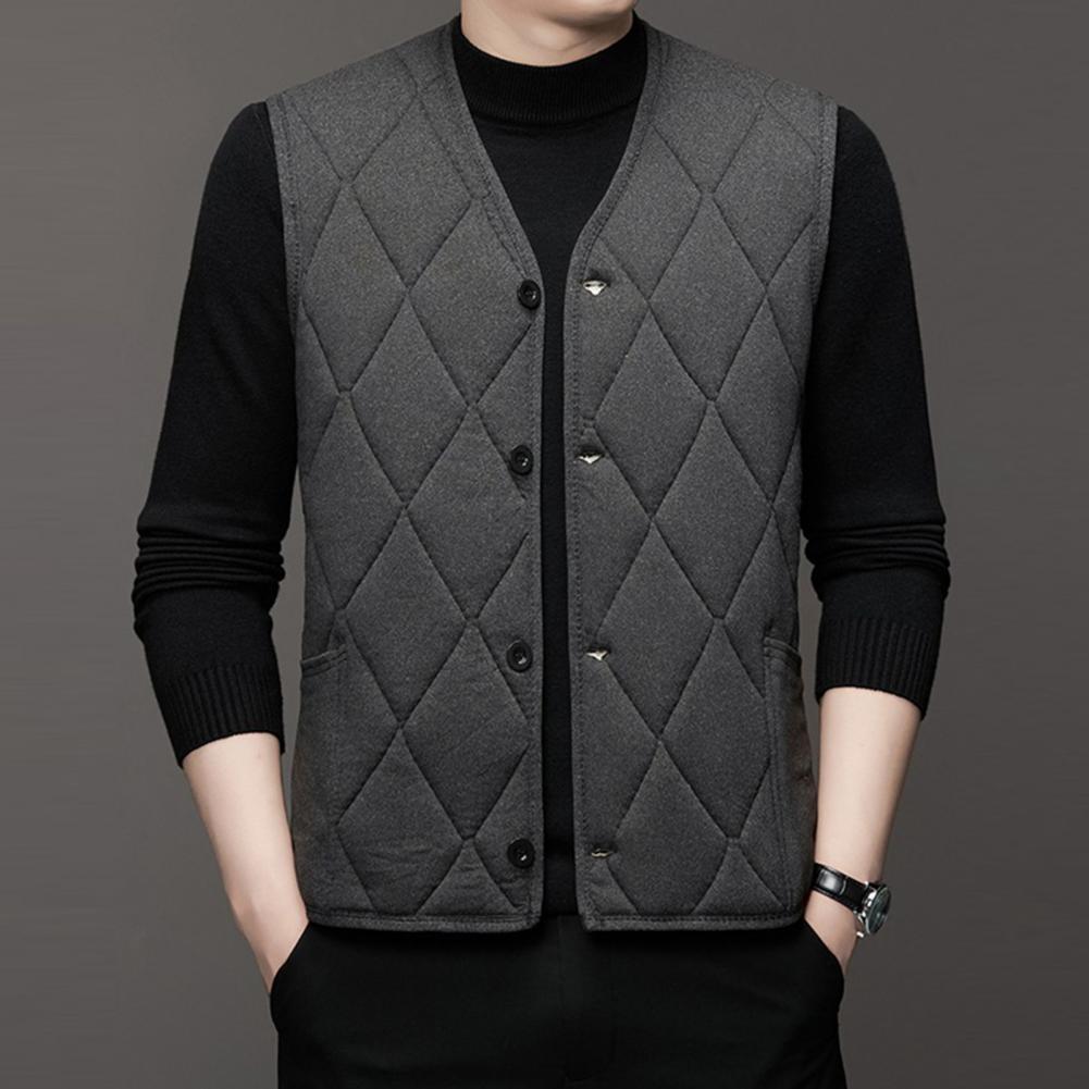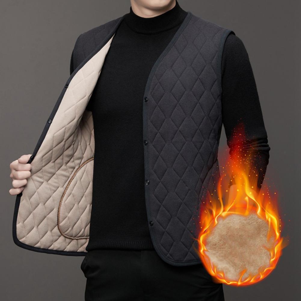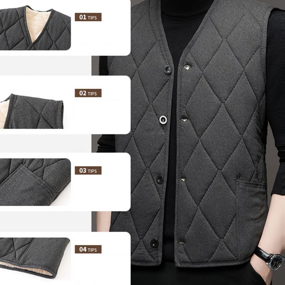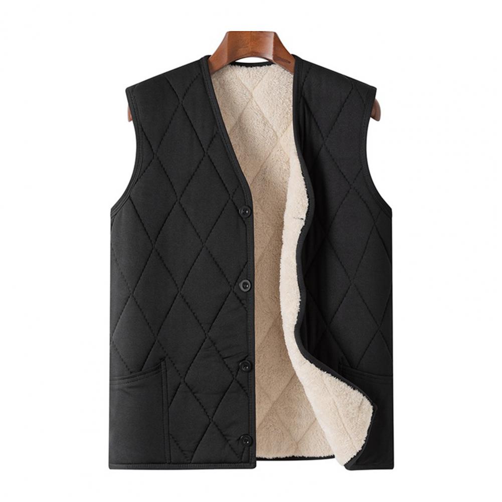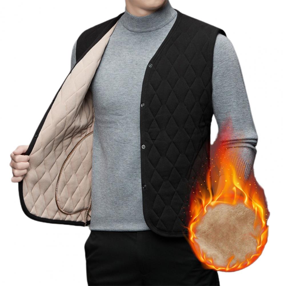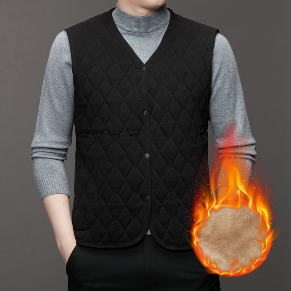 Men Fall Winter Vest Single-breasted Sleeveless Padded Solid Color Cardigan Solid Color Plus Size Warm Thick Cardigan Mid Length Waistcoat Men Coat