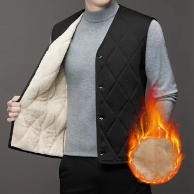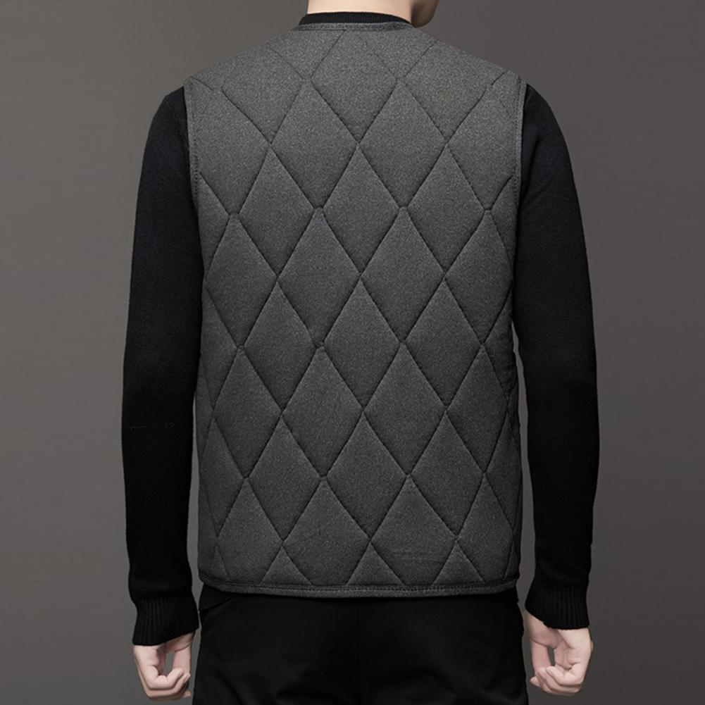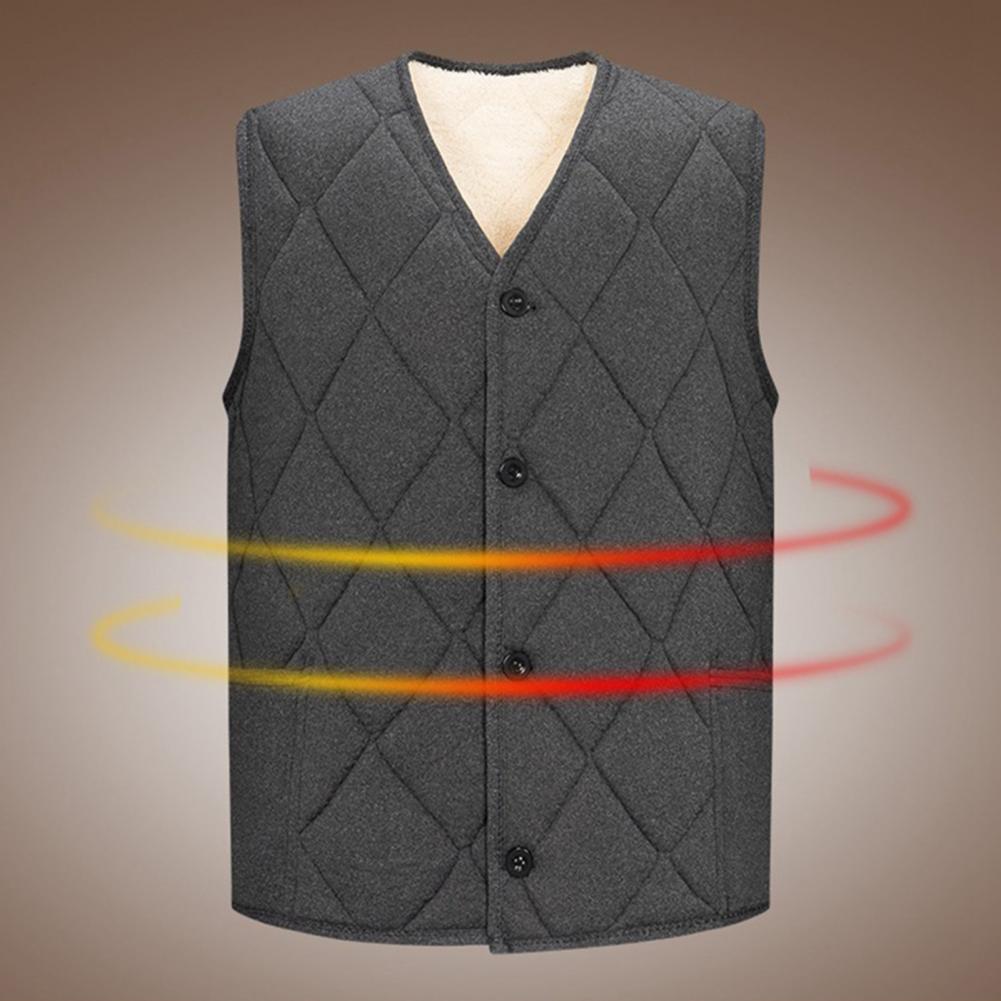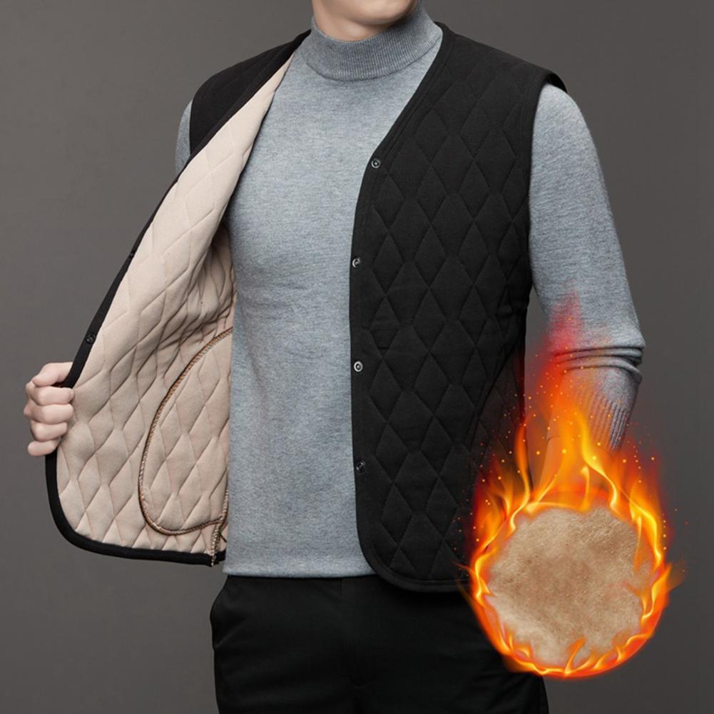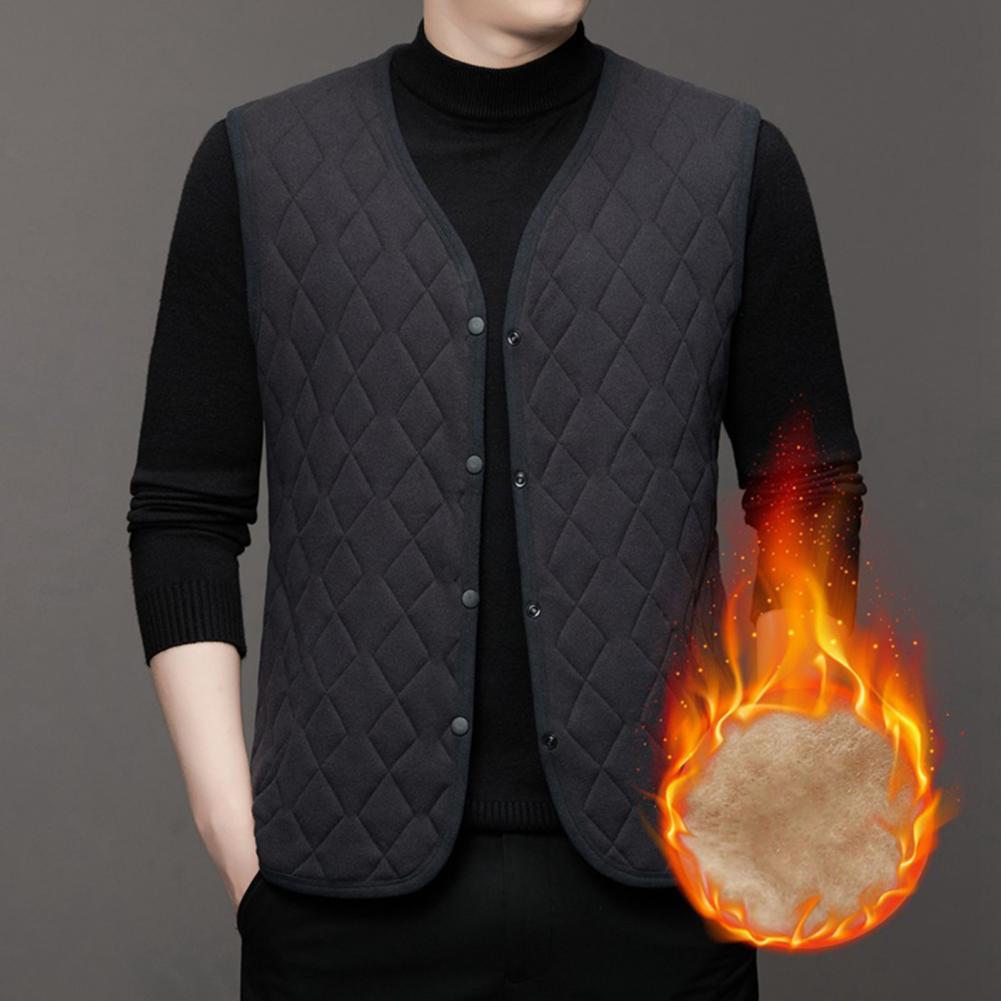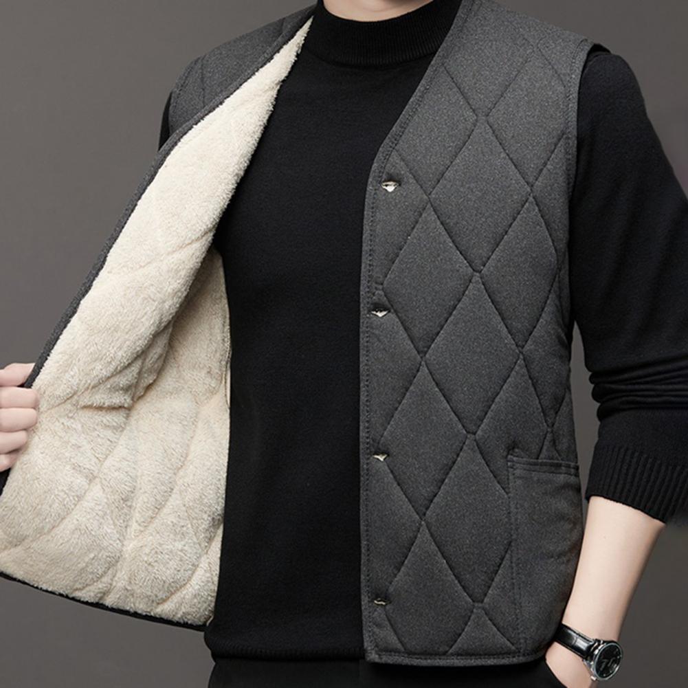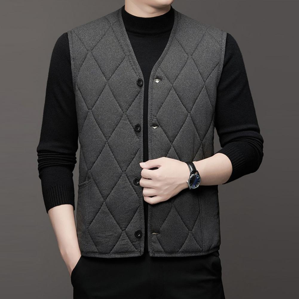 Men Fall Winter Vest Single-breasted Sleeveless Padded Solid Color Cardigan Solid Color Plus Size Warm Thick Cardigan Mid Length Waistcoat Men Coat
