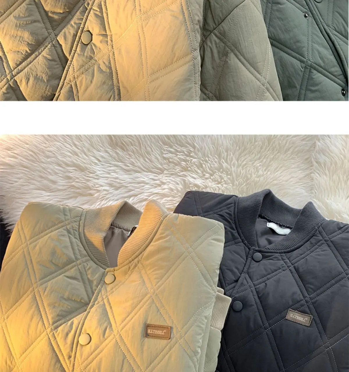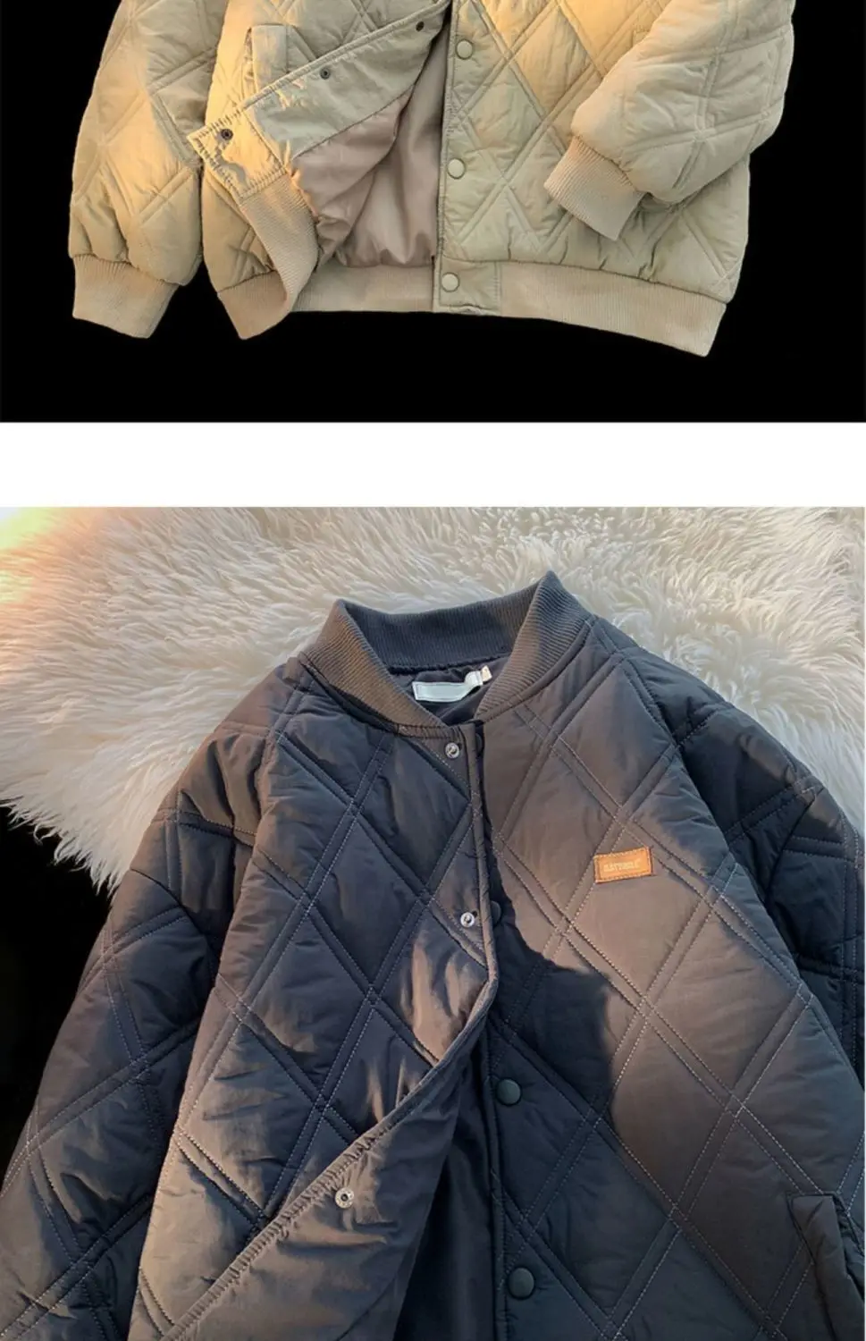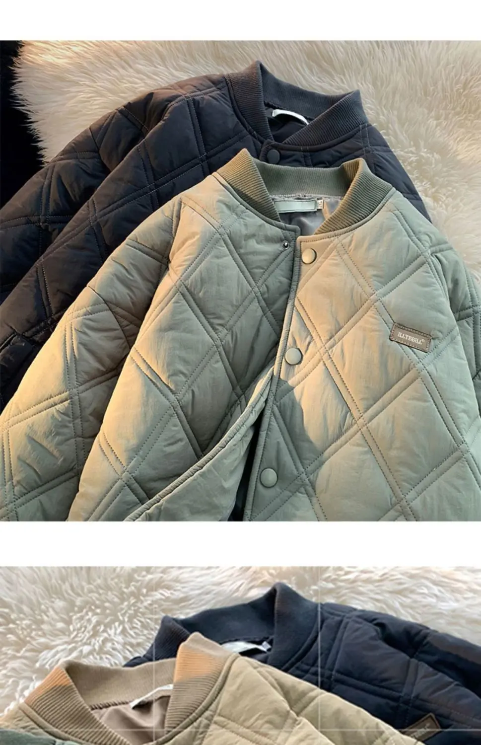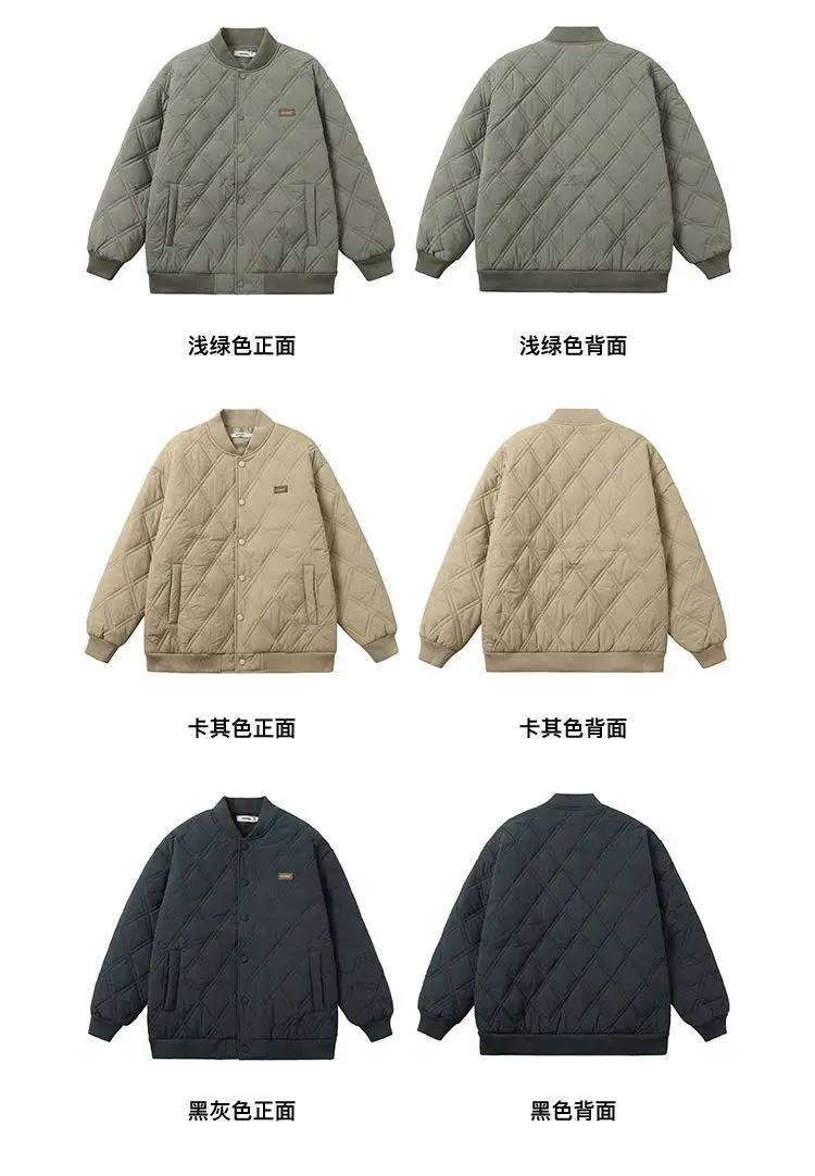 Nam Thu Đông Cổ Áo Đứng Kim Cương Lưới Dày Ấm Áp Chất Lượng Cao Áo Màu Trơn Cổ Điện Đơn Ấm Parkas