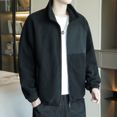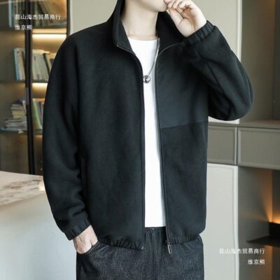 Nam Thu Đông Phối Cổ Đứng Áo Khoác Cardigan Nỉ Trang Co Giãn Chống Thời Trang Đa Năng