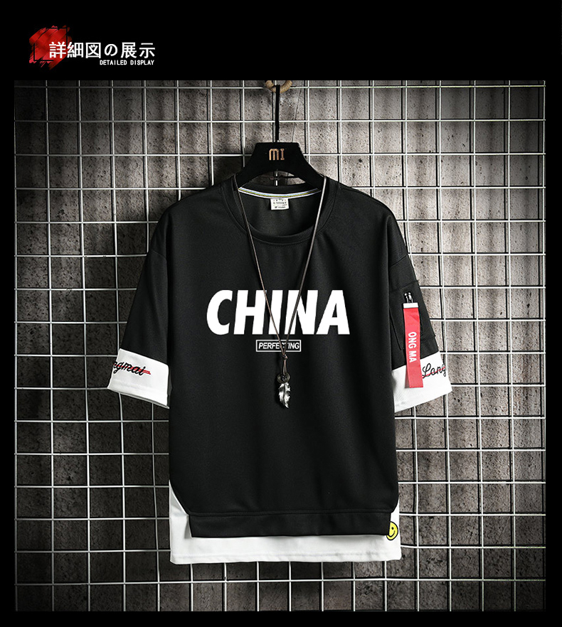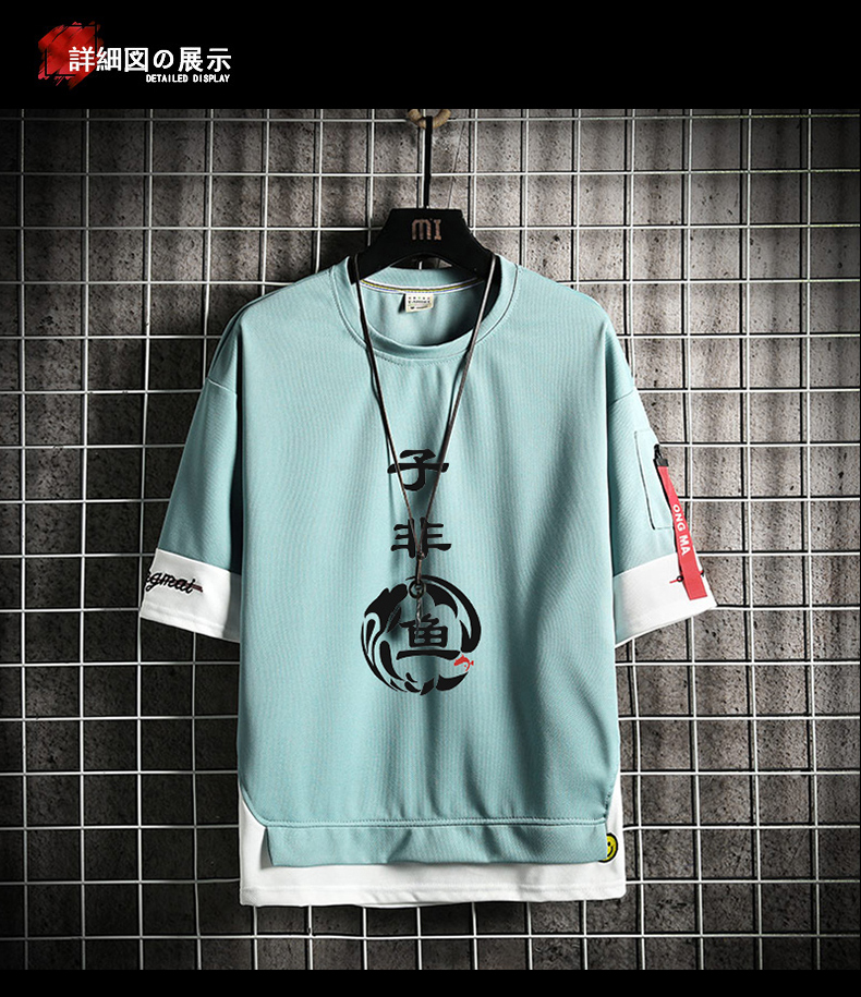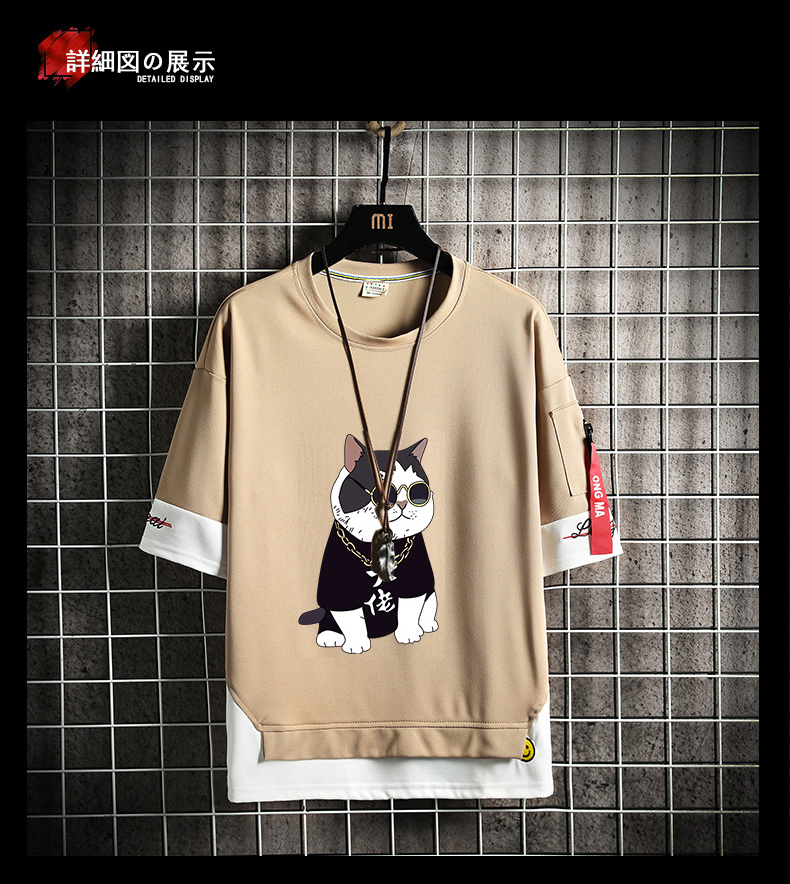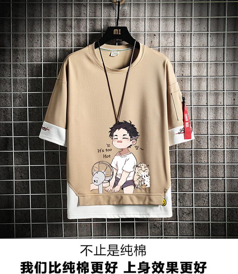 Nam triều mùa hè thương hiệu áo thun ngắn tay nam rộng rãi áo thun cặp đôi mặc nửa tay áo lụa băng ba phần tư tay áo trên