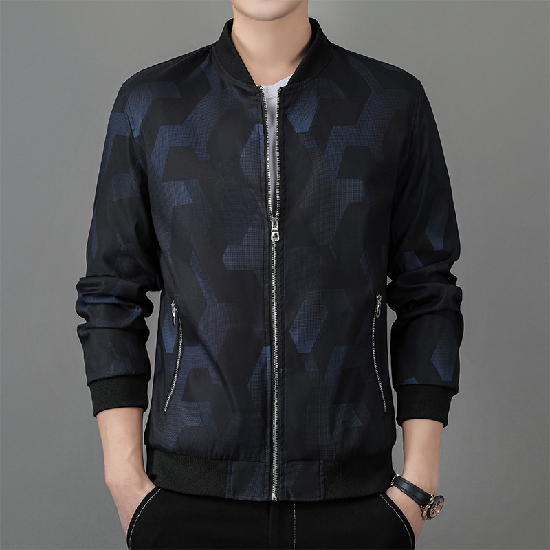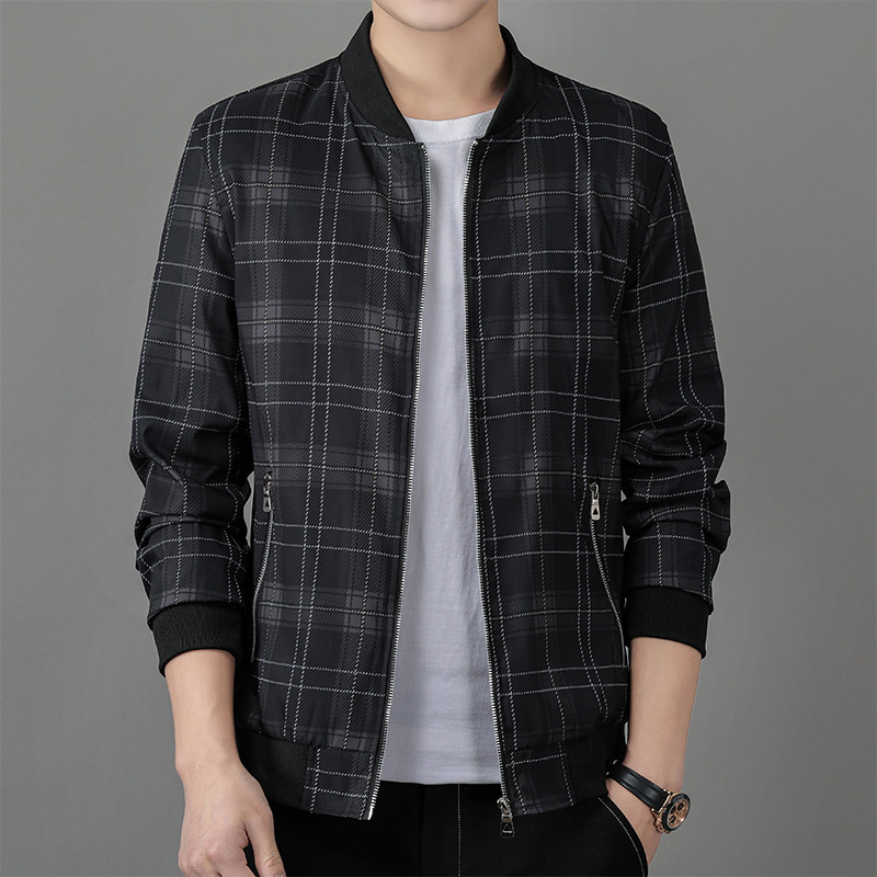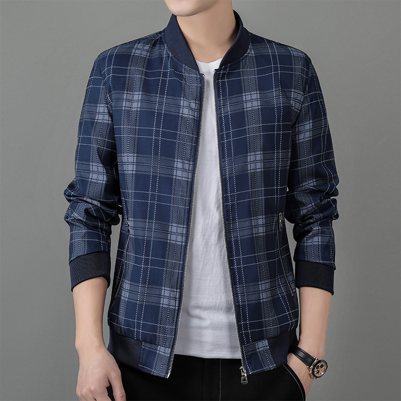 Nam Xuân Thu Công Sở Mới Áo Khoác Thời Trang Trẻ Trung Bóng Chày Cổ Áo Khoác Nam Kẻ Sọc Áo Khoác Cao Cấp