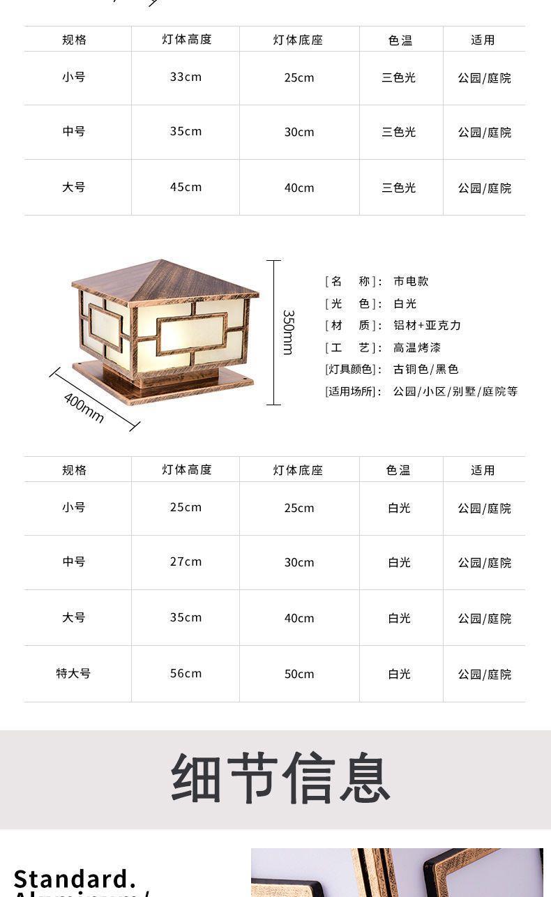 Năng lượng mặt trời cột chống nước đầu đèn nhà đèn đèn trang trí áp dụng các dịp sân vườn vườn công viên đèn sạc năng lượng mặt trời