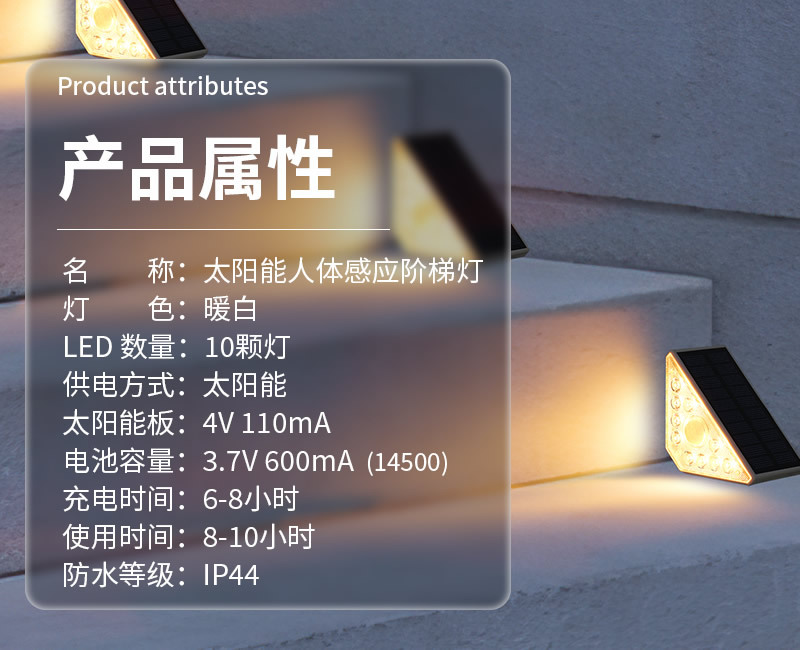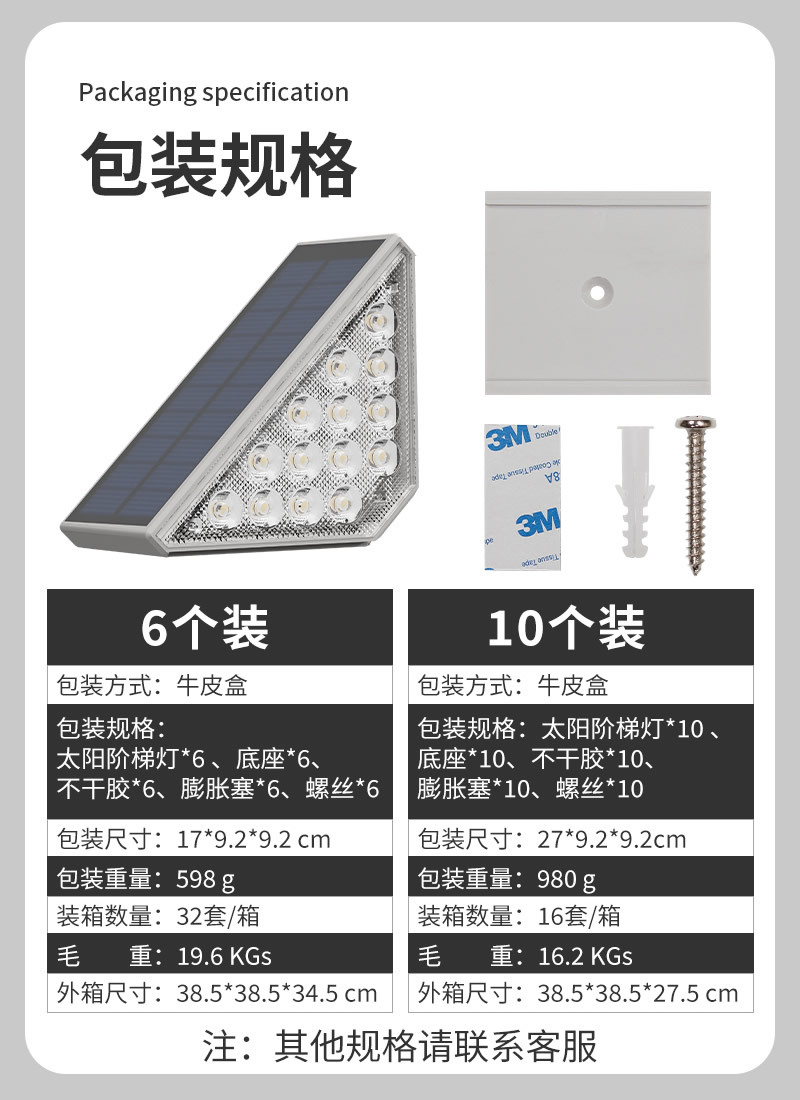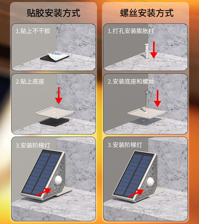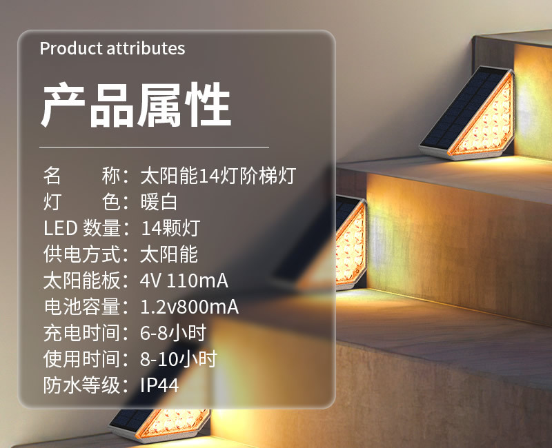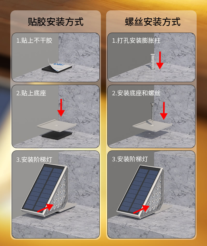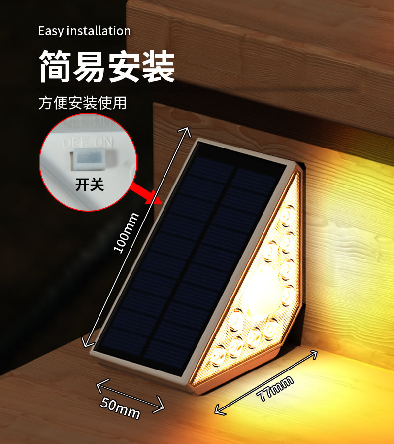 太阳能户外庭院灯台阶灯楼梯阶梯灯防水踏步灯LED花园装饰步道灯