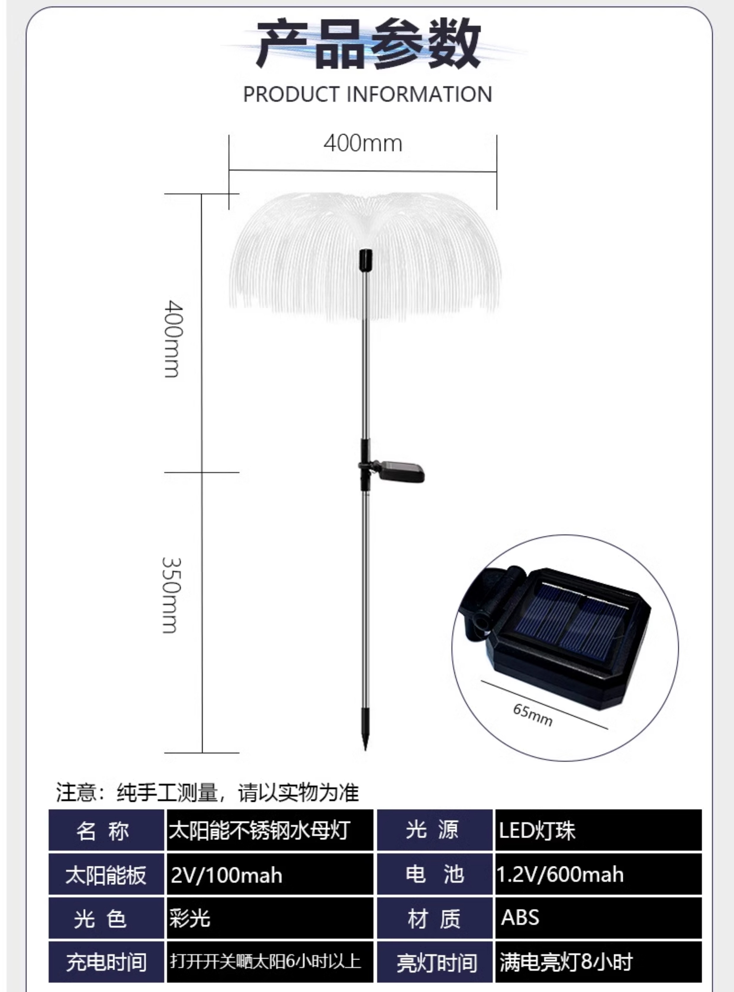 Năng lượng mặt trời ngoài trời sứa đèn nhiều màu sắc thay đổi đèn sợi quang sân ban công bố trí sân vườn đèn cỏ. Quý khách có nhu cầu mua Đèn ngoài trời nhập khẩu vui lòng liên hệ với chúng tôi để được tư vấn hỗ trợ. Dịch vụ mua hàng Trung Quốc sẽ hỗ trợ quý khách mua hàng từ nhà cung cấp và giao tới tận tay quý khách hàng..Nguồn điện: xem mô tả Chất liệu: thép không gỉ, cấp độ bảo vệ sợi quang: IP65 Thông số kỹ thuật: đèn sứa một lớp – tự động thay đổi nhiều màu – 5W/một lớp + đèn sứa sậy – tự động thay đổi nhiều màu – đèn sứa 5W/hai lớp – tự động thay đổi nhiều màu – 5W/ Đèn sứa cực phát sáng một lớp—tự động đổi màu nhiều màu-5W/Đèn sứa sao hai lớp—tự động đổi màu nhiều màu-5W/Đèn sứa sao trăng hai lớp—tự động đổi màu nhiều màu-5W/Bướm hồng hai lớp đèn sứa—Đèn sứa bướm tím nhiều màu—Đèn sứa bướm tím hai lớp—Đèn sứa bướm tím hai lớp—Đèn sứa bướm tím hai lớp—Tự động thay đổi nhiều màu-5W Kiểu dáng: Đơn giản và hiện đại Nguồn sáng: Đèn LED Thời gian chiếu sáng liên tục: 16 giờ (đã bao gồm)-24 giờ (đã bao gồm) Loại :khác