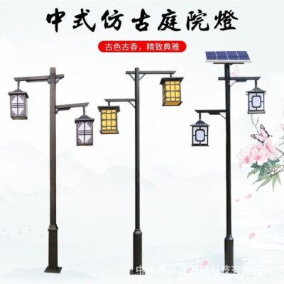 Năng lượng mặt trời ngoài trời theo phong cách Trung Quốc đèn sân vườn cổ 3 mét biệt thự cộng đồng công viên đèn cảnh quan đèn cực cao tùy chỉnh không thấm nước