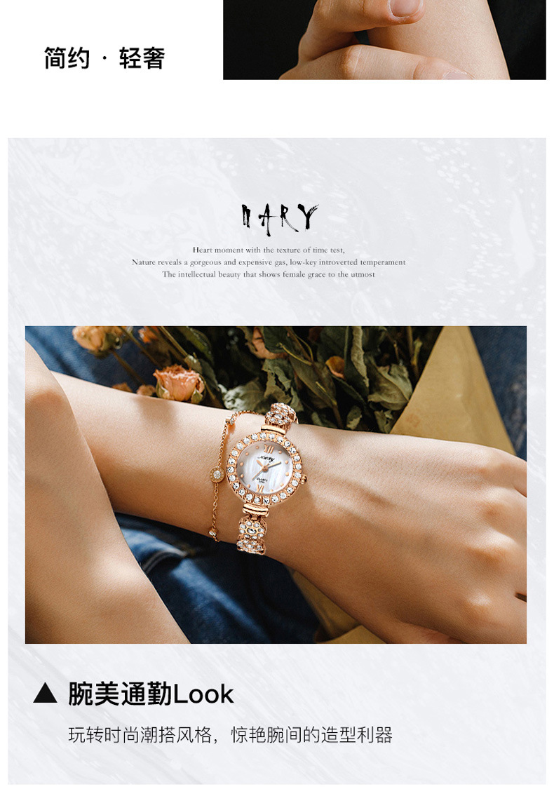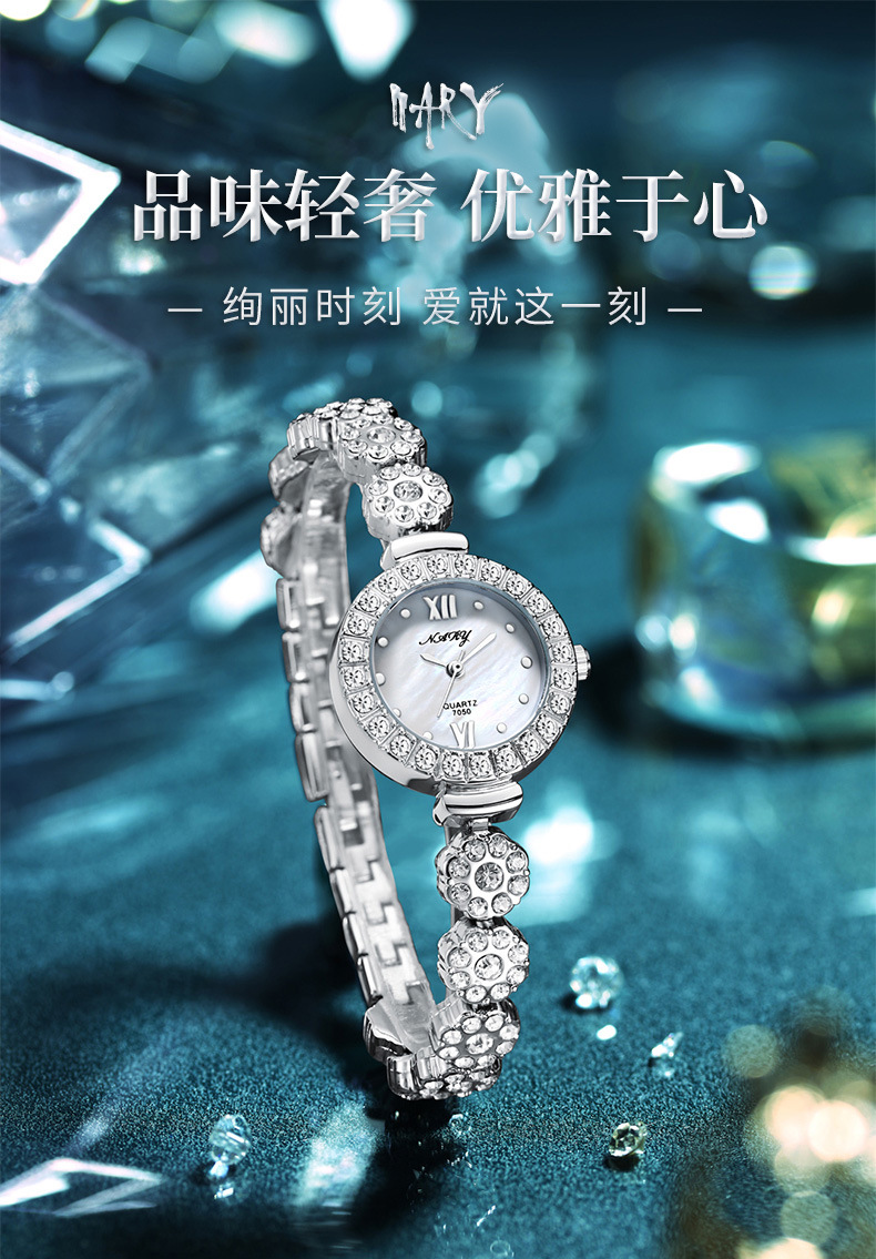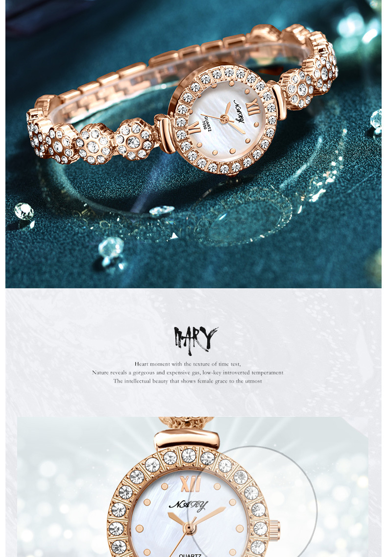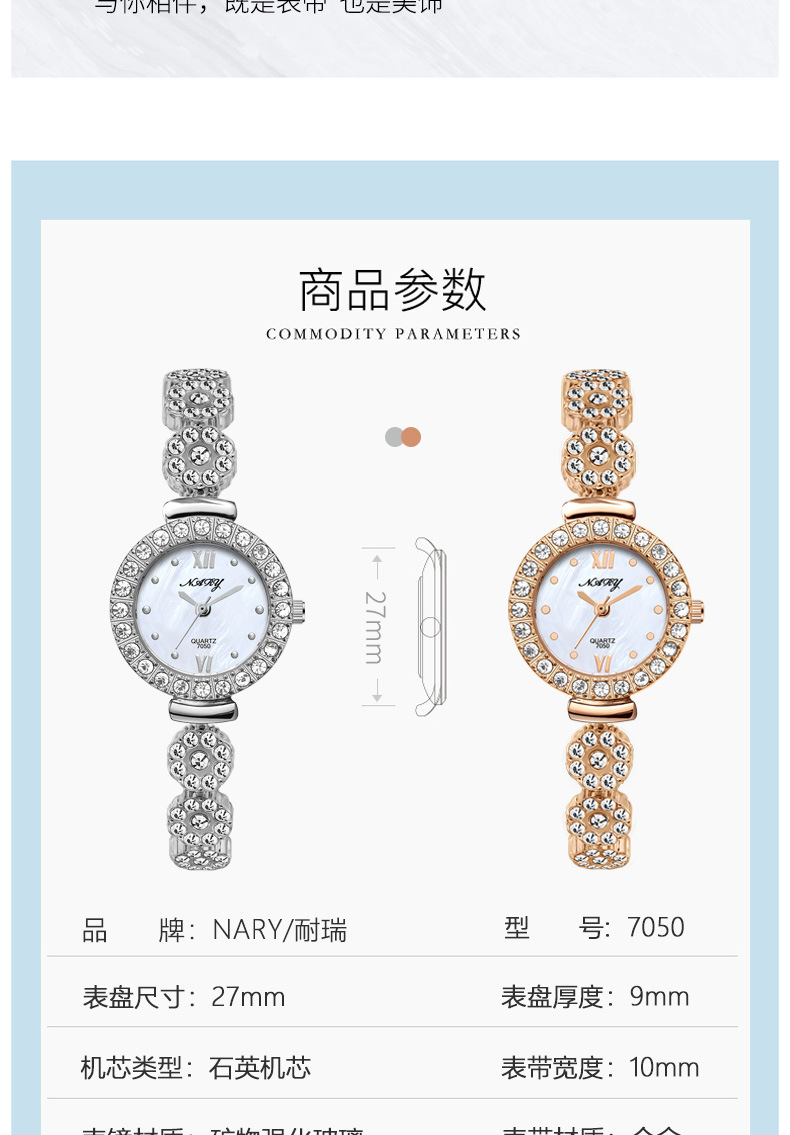 NARY/ Nary Full Diamond Super Fairy Light Đồng hồ thạch anh nữ sang trọng Chống nước Quà tặng sinh nhật thời trang đơn giản