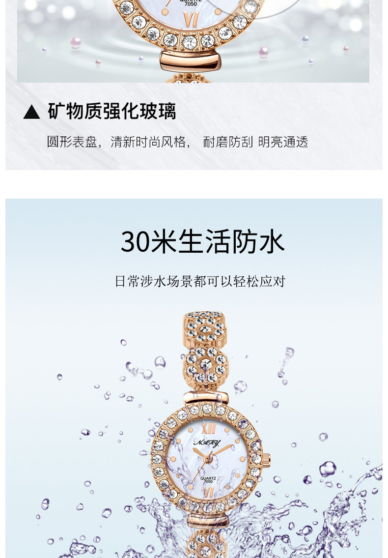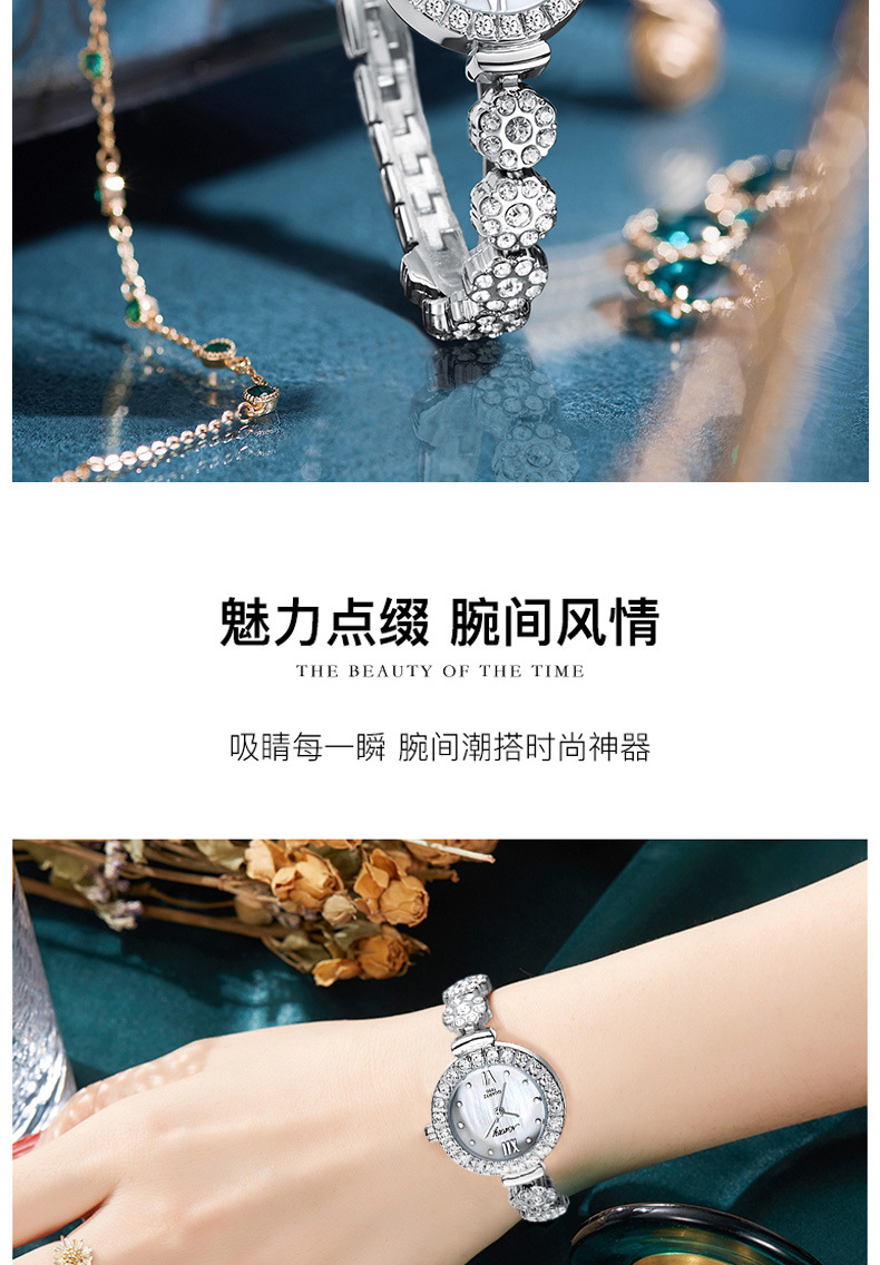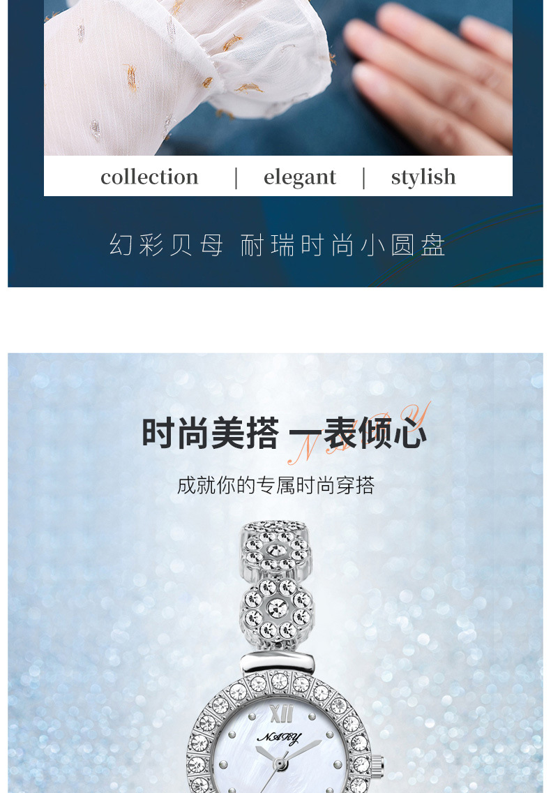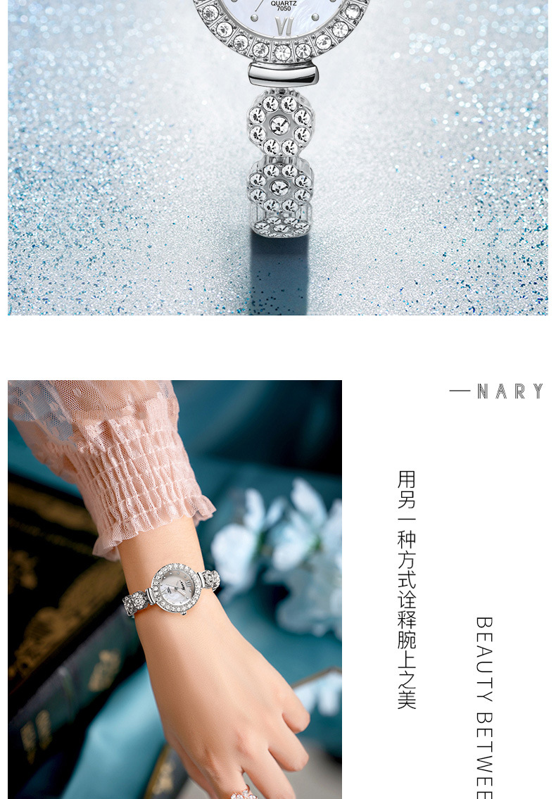 NARY/ Nary Full Diamond Super Fairy Light Đồng hồ thạch anh nữ sang trọng Chống nước Quà tặng sinh nhật thời trang đơn giản
