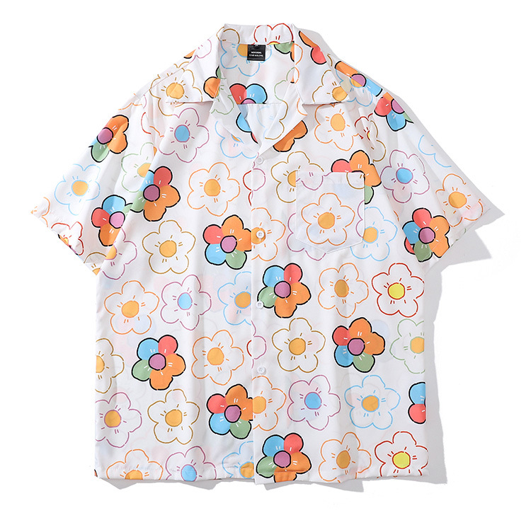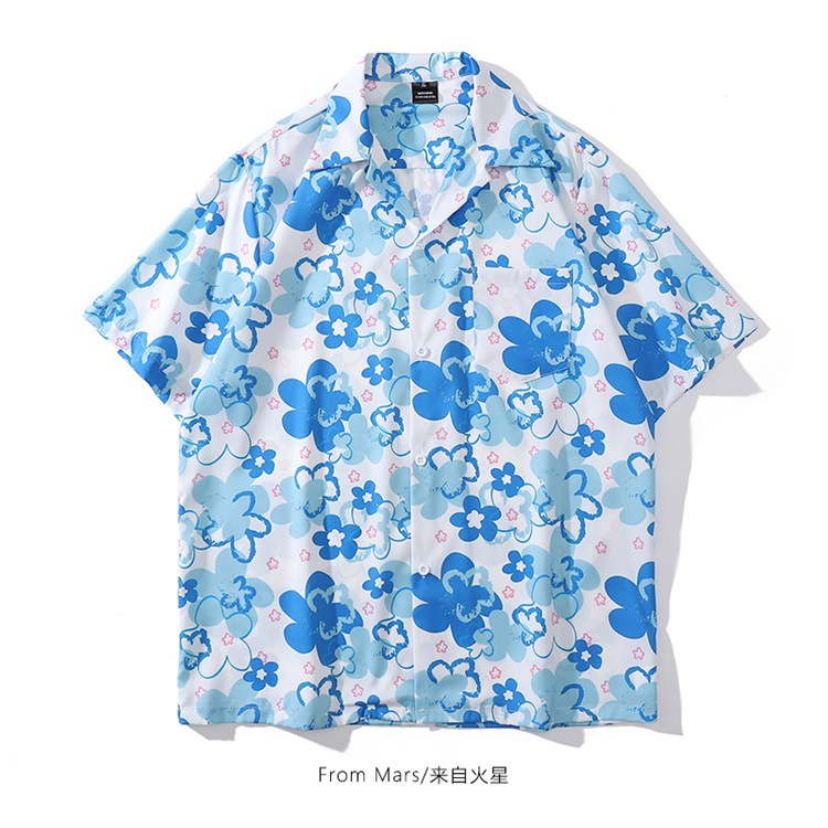 NASA cổ hoa sơ mi ngắn tay nam mùa hè băng lụa mỏng phần Hawaii sơ mi vintage vintage đi biển