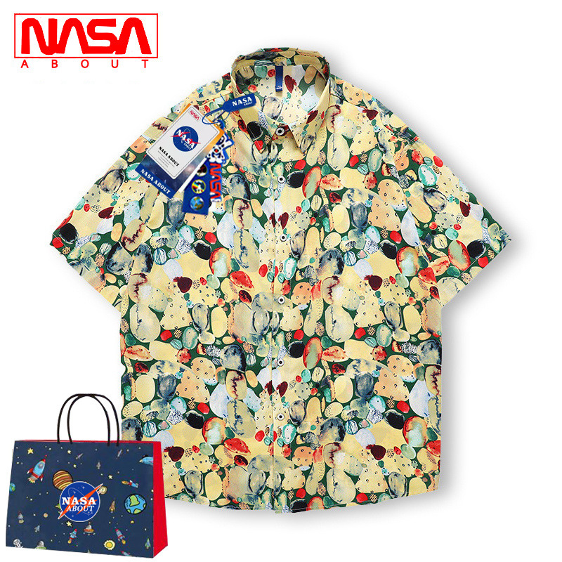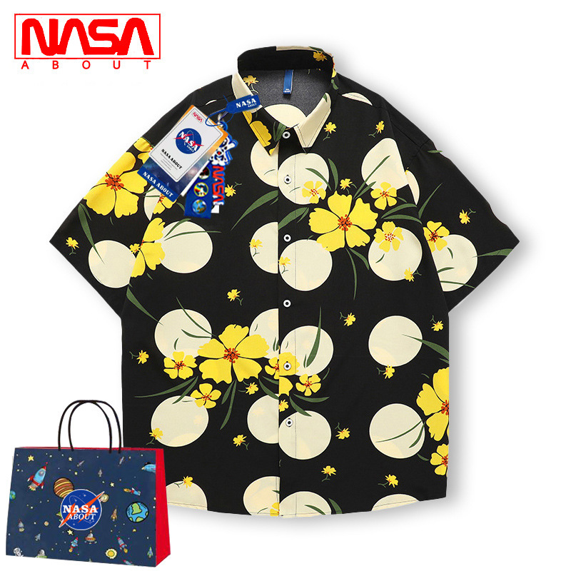 NASA doanh mùa hè ice lụa ngắn tay áo sơ mi nam Hawaii quốc triều bãi biển hoa sơ mi rời tất cả các trận đấu inch áo sơ mi nam