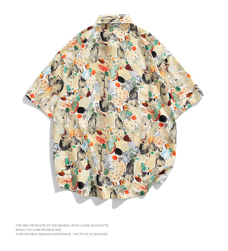 NASA doanh mùa hè mới ice lụa ngắn tay áo sơ mi nam rộng hợp thời trang in hình áo sơ mi nam ngắn tay giản dị