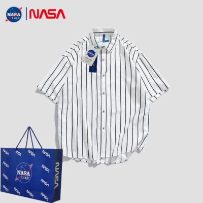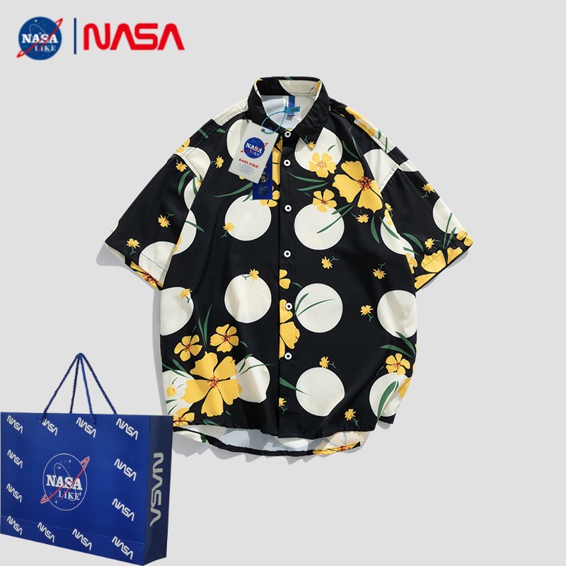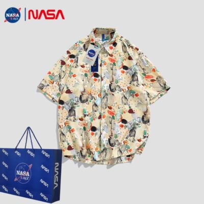 NASA doanh mùa hè mới ice lụa ngắn tay áo sơ mi nam rộng hợp thời trang in hình áo sơ mi nam ngắn tay giản dị