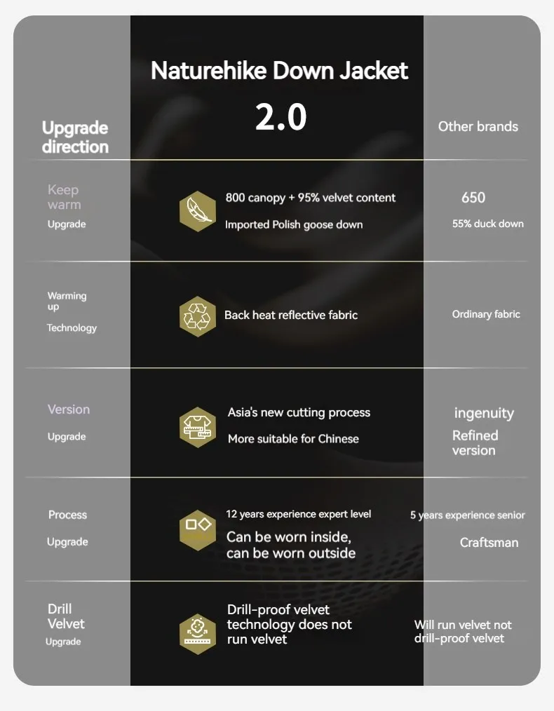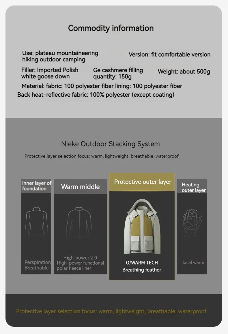 Naturehike 800FP Mùa Đông Ấm Áp Dày Ngỗng Xuống Áo Khoác Nam Nữ Cắm Trại Leo Núi Lông Vũ Vỏ Áo Chống Thấm Nước