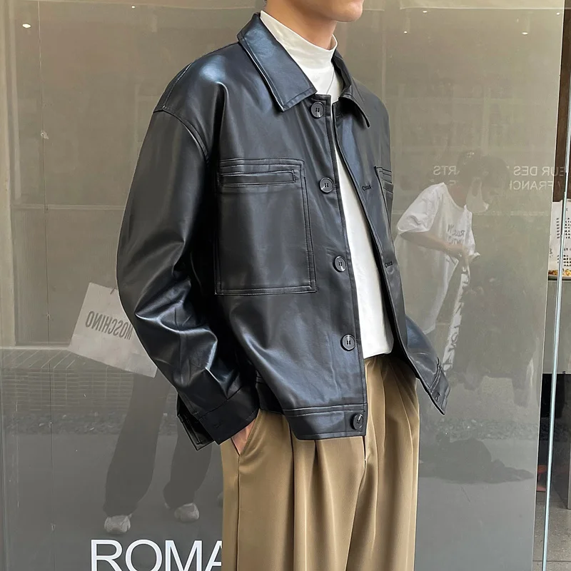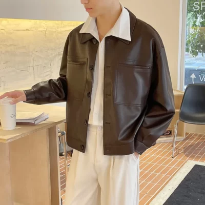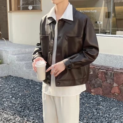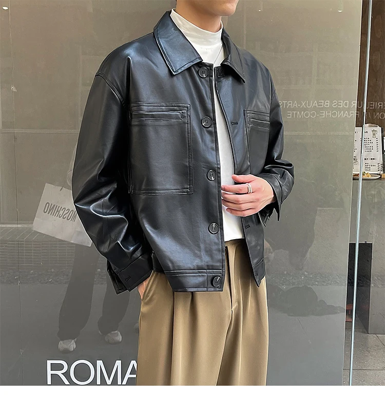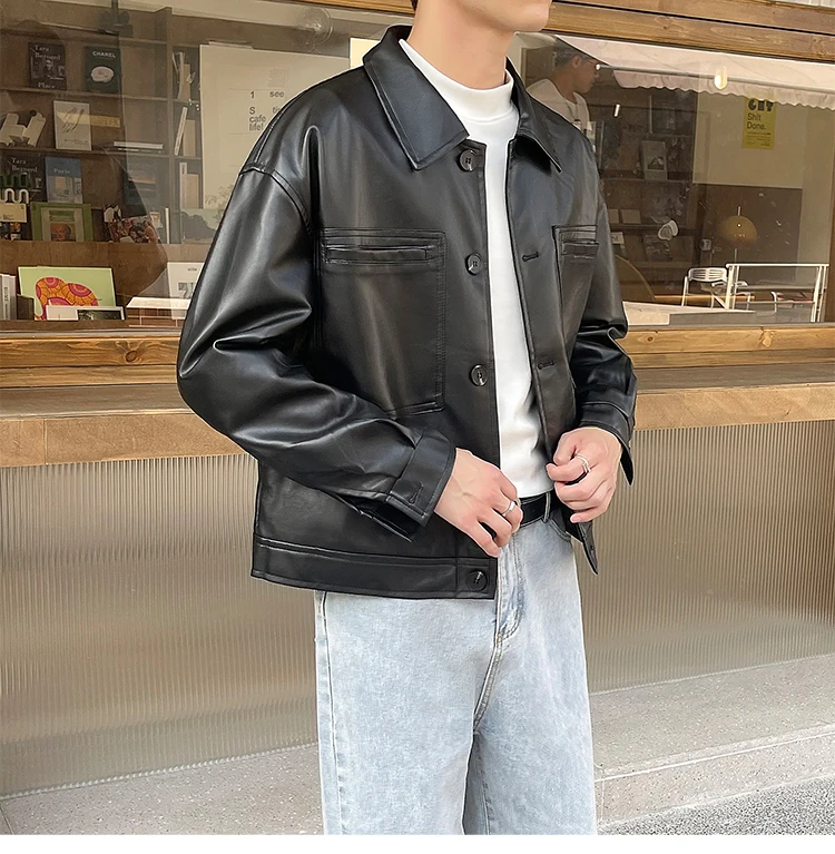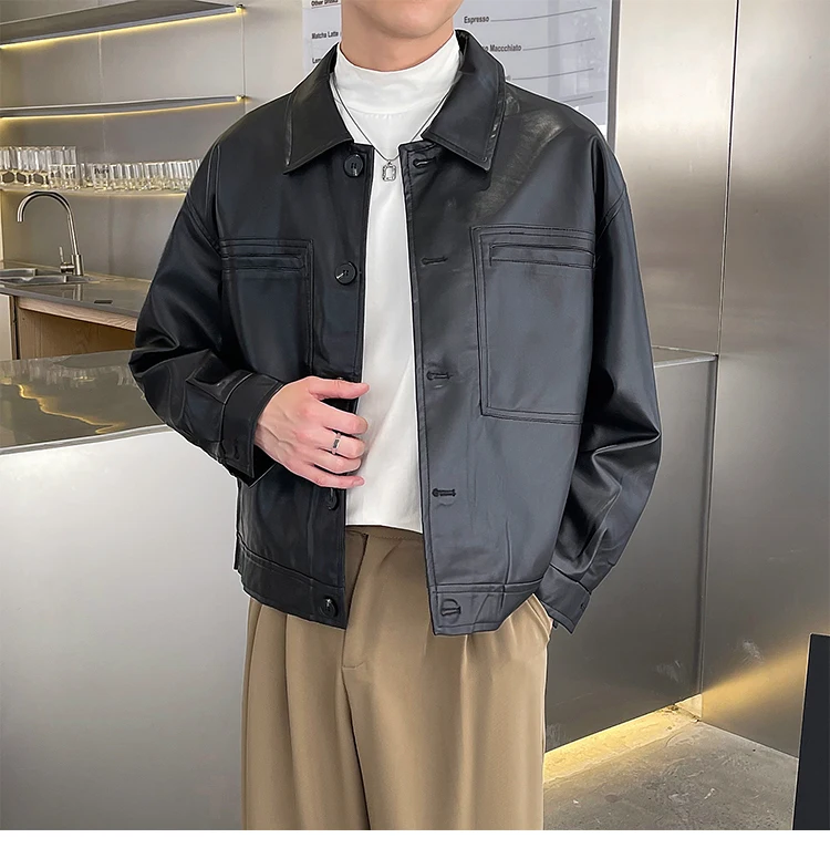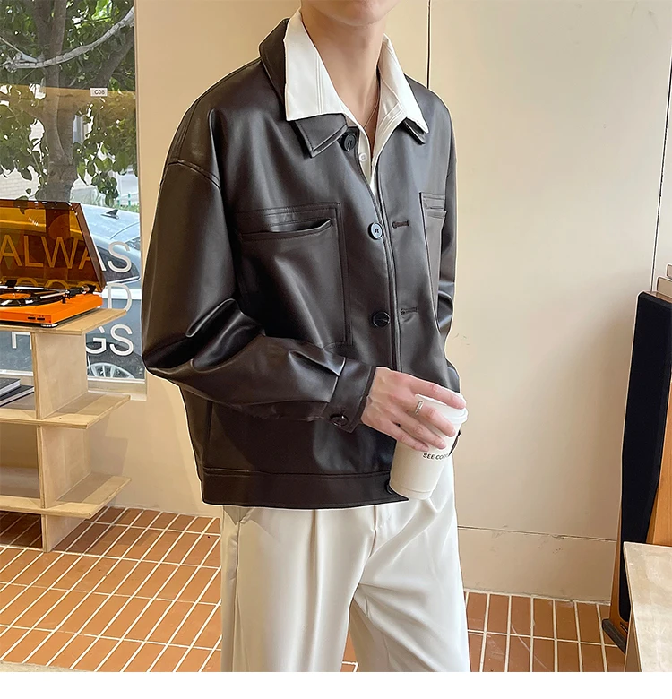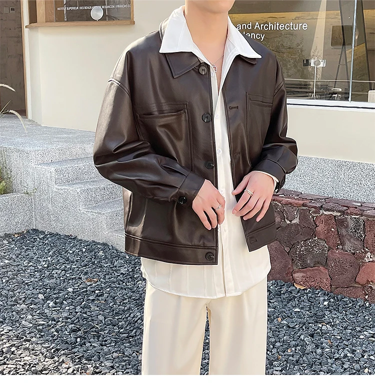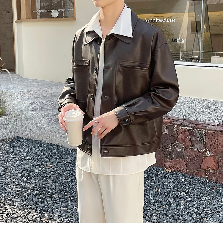 Nâu Áo Khoác Da Nam Slim Thời Trang Túi Xe Máy Áo Khoác Nam Dạo Phố Hàn Quốc Áo Khoác Bomber Nam Áo Khoác Ngoài