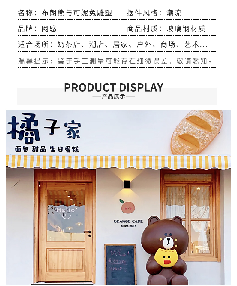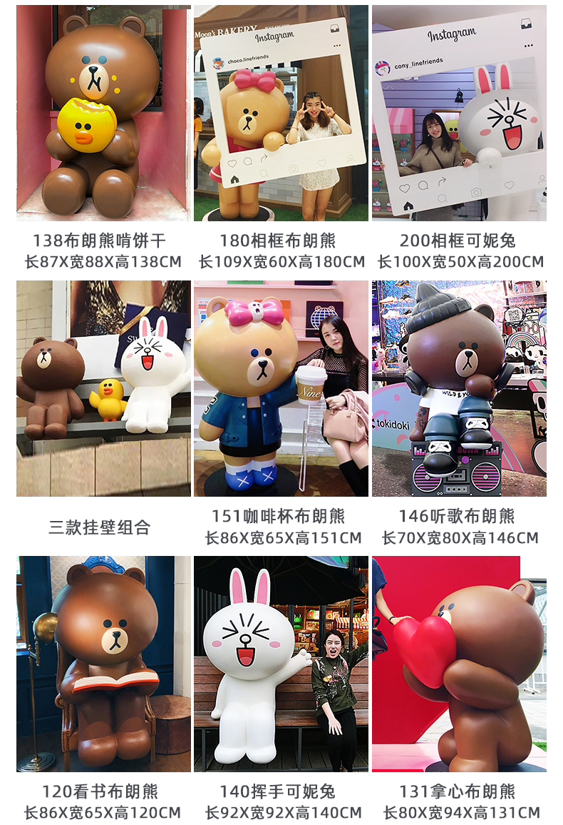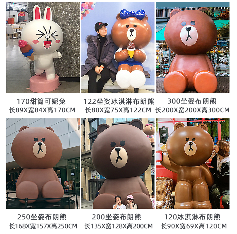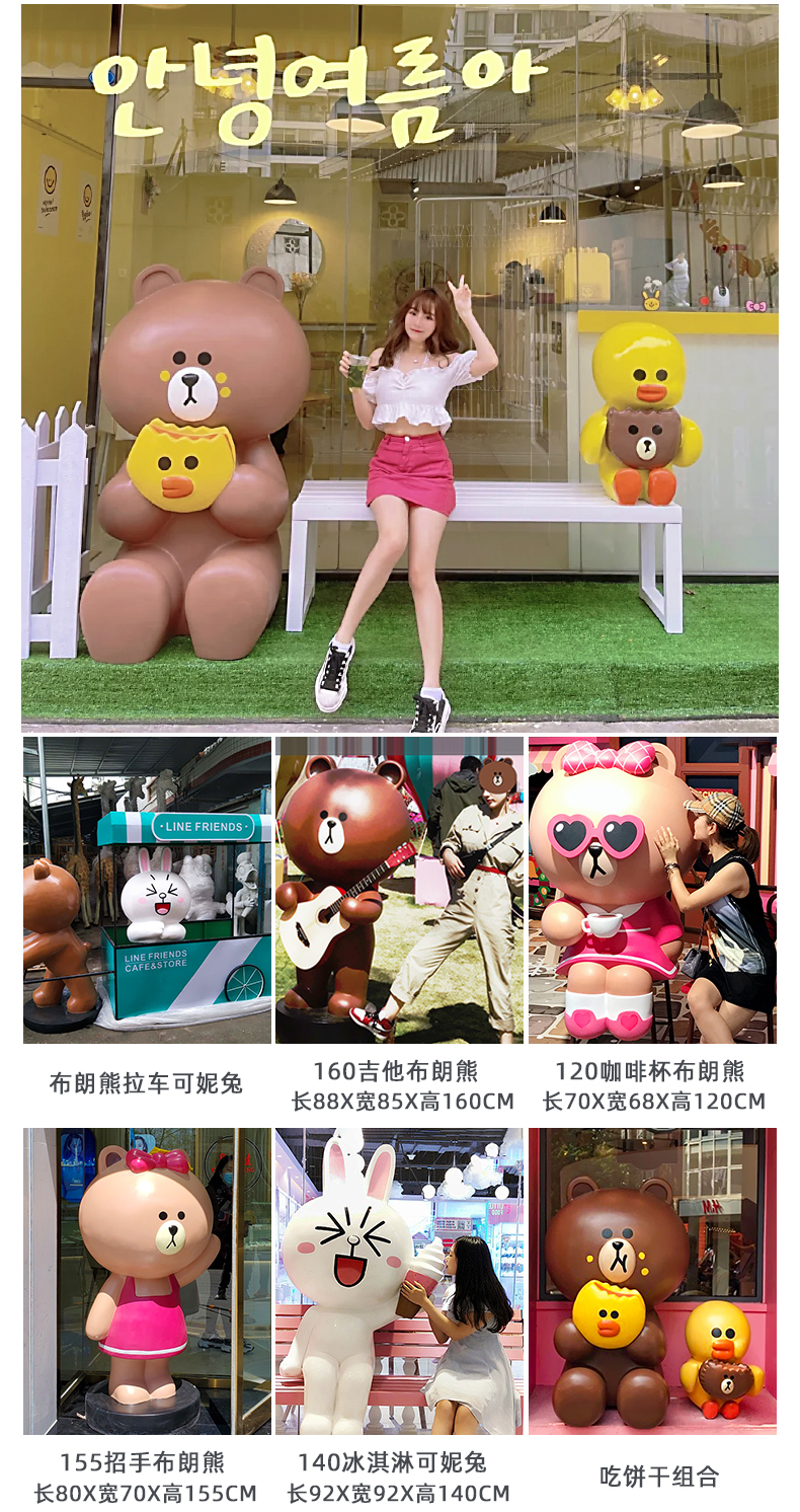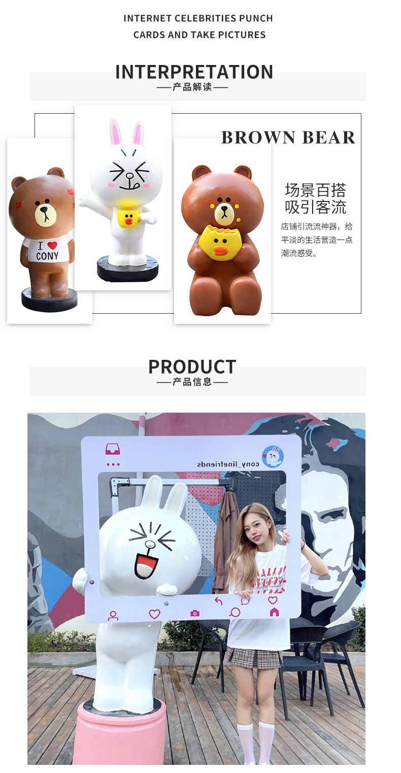 Net đỏ Gấu nâu phim hoạt hình sợi thủy tinh gia cố nhựa điêu khắc trung tâm mua sắm trà sữa cửa hàng trà sữa ngoài trời ảnh thẻ vẻ đẹp Chen trang trí đồ trang trí