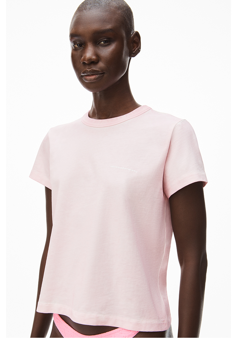 [New Spring / Summer] Áo phông dệt kim xoắn cao có logo Ms. Alexander Wang Màu hồng nhạt