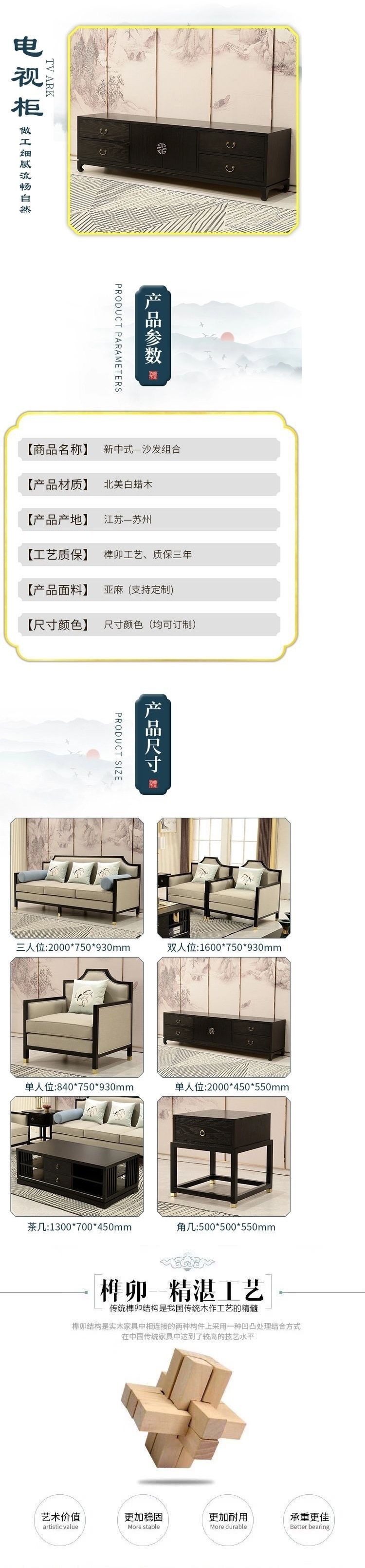 New Trung Quốc phong cách sofa kết hợp căn hộ nhỏ hiện đại nhỏ gọn gỗ rắn vải sofa mô hình phòng khách sạn đẹp đồ nội thất sang trọng hàng loạt