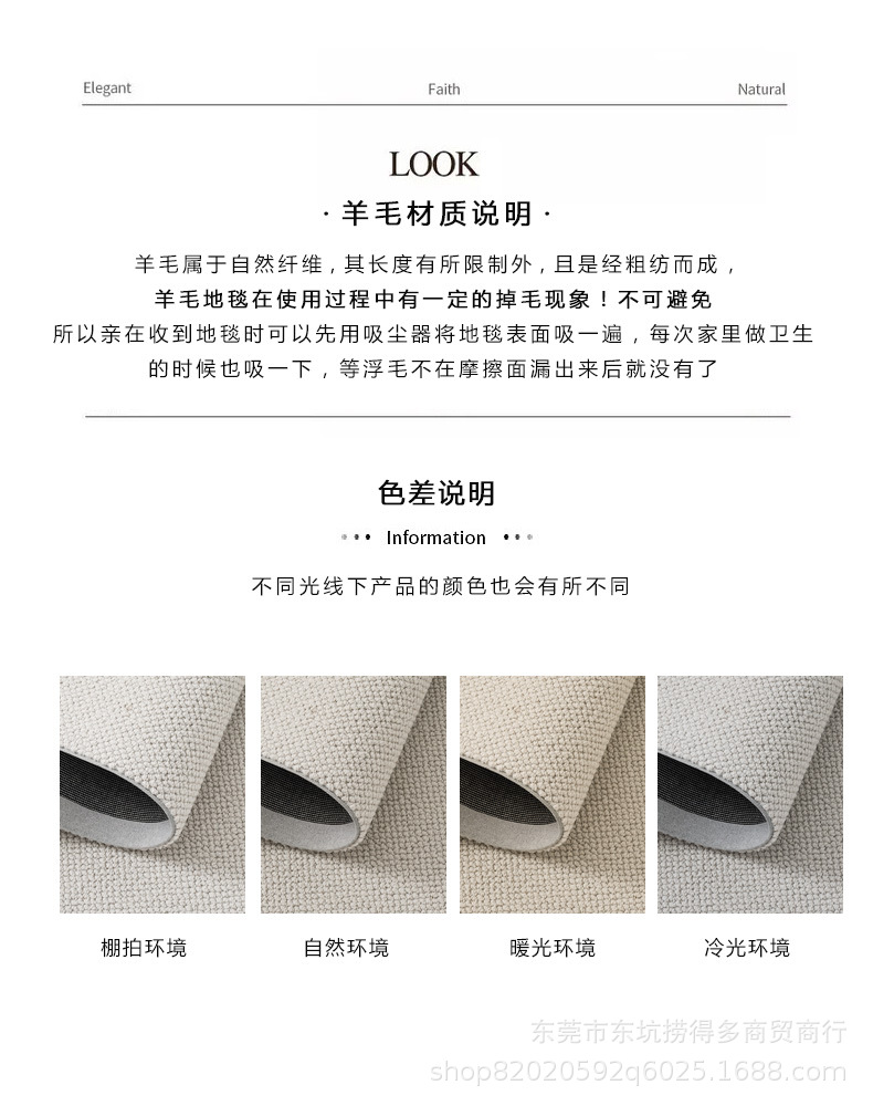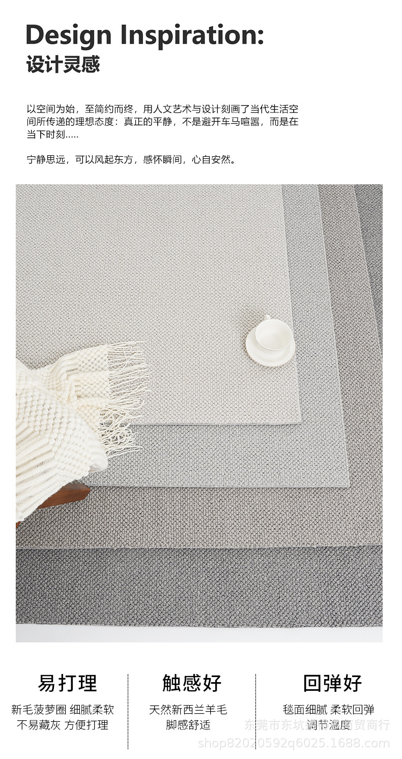 New Zealand len thảm phòng khách phòng ngủ hiện đại tối giản màu trơn bàn cà phê thảm thảm wabi-sabi tối giản sự pha trộn mới