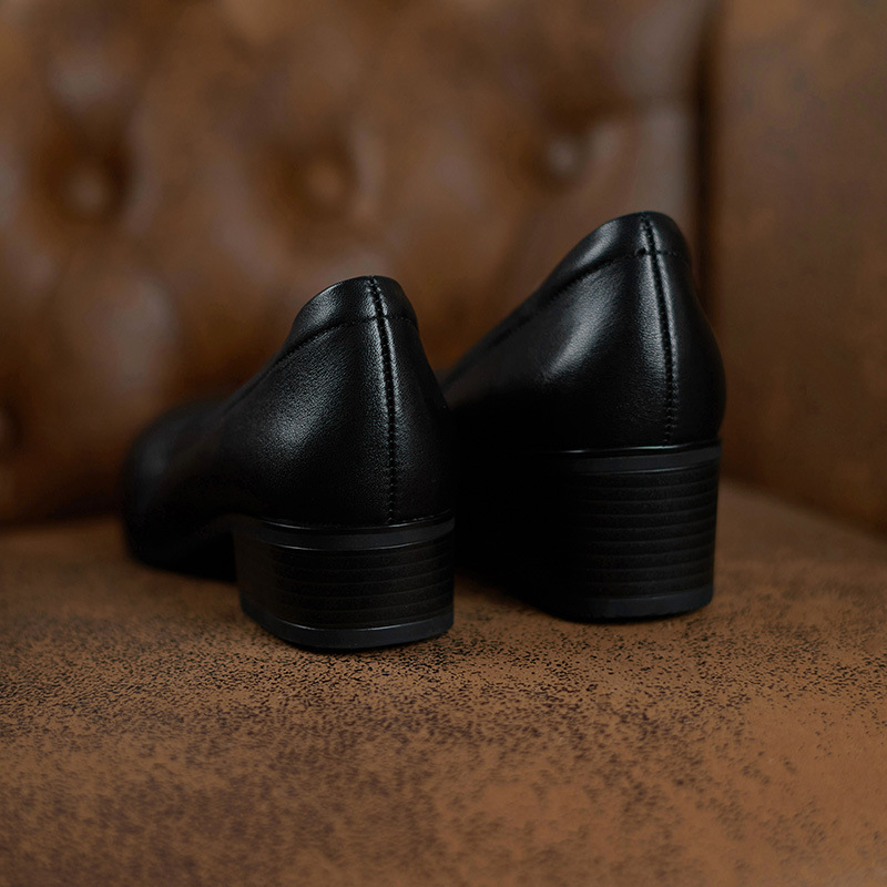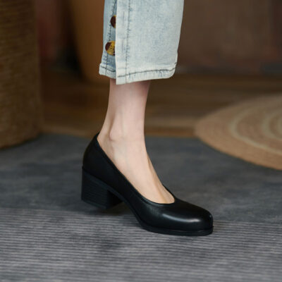 Ngân hàng khách sạn phỏng vấn giày công sở nữ màu đen đế dày mũi tròn giày đơn tiếp viên hàng không gót thấp đế dày giày da công sở chuyên nghiệp