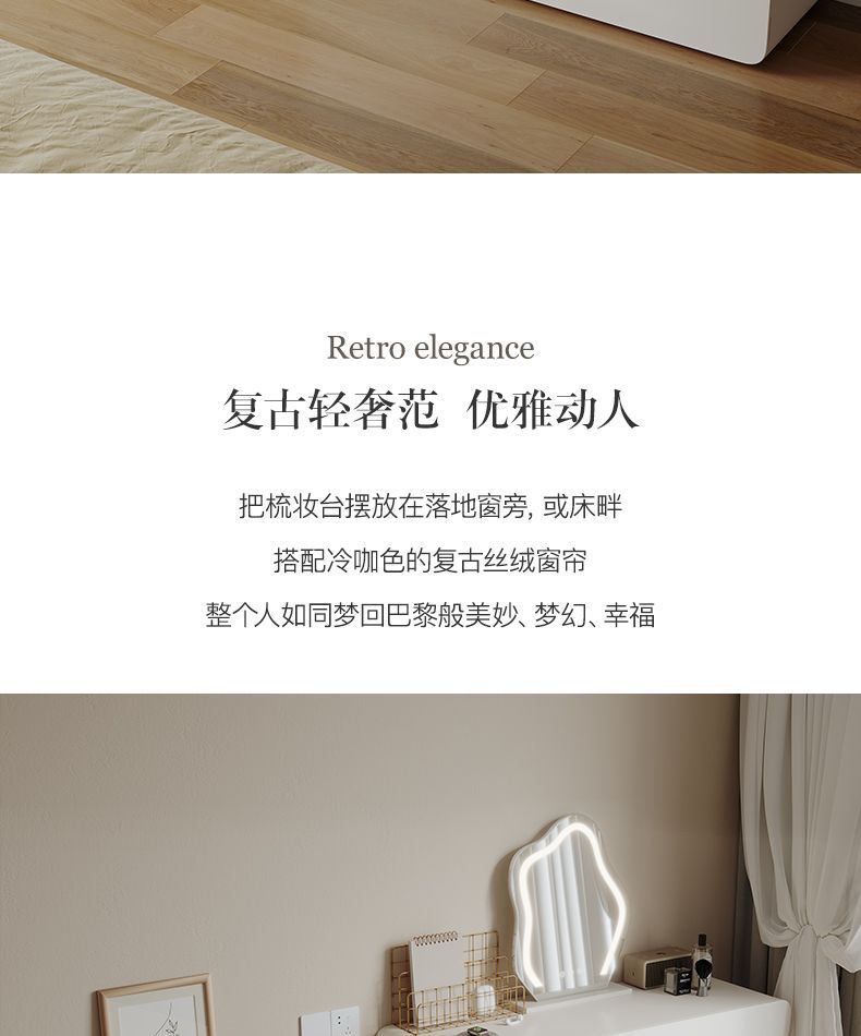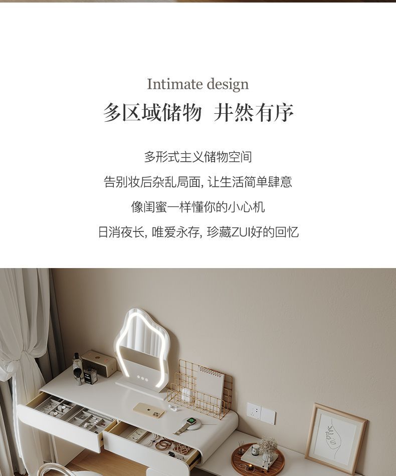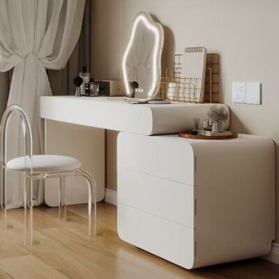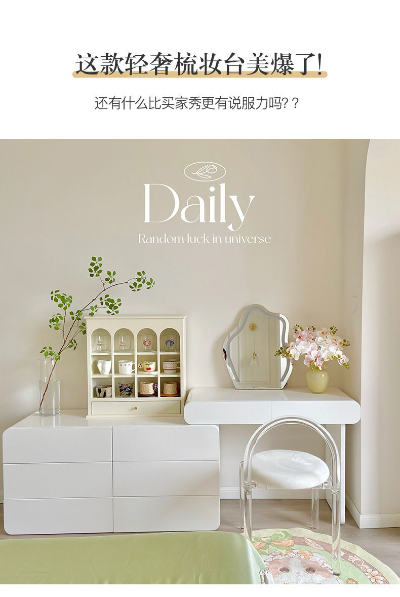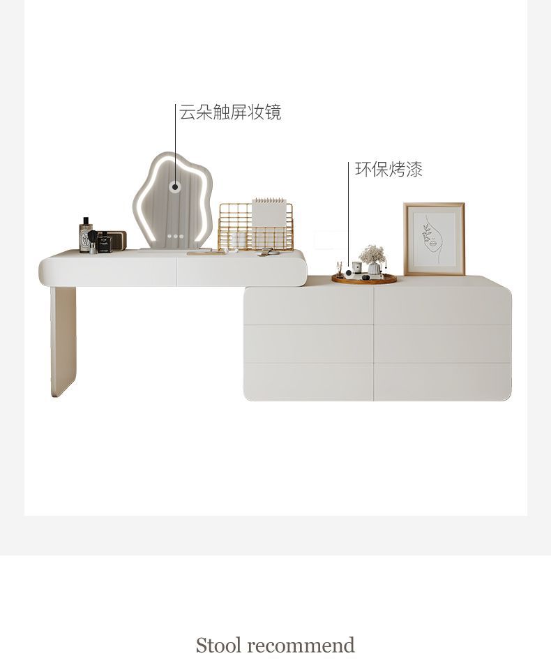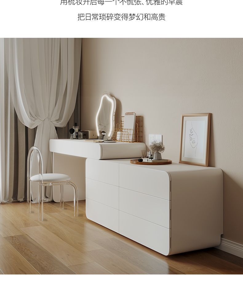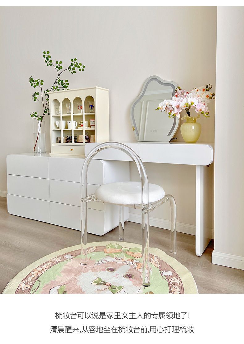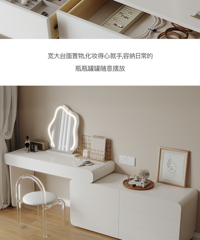 Ngăn kéo phòng ngủ tủ quần áo tích hợp tủ lưu trữ góc thu vào hiện đại bàn trang điểm ghế trong suốt sơn bàn trang điểm