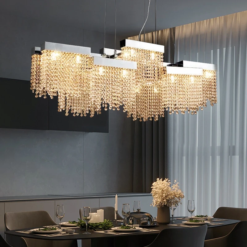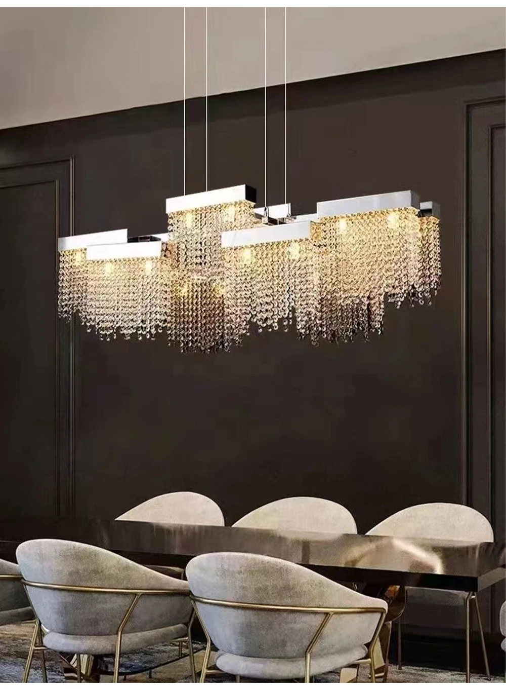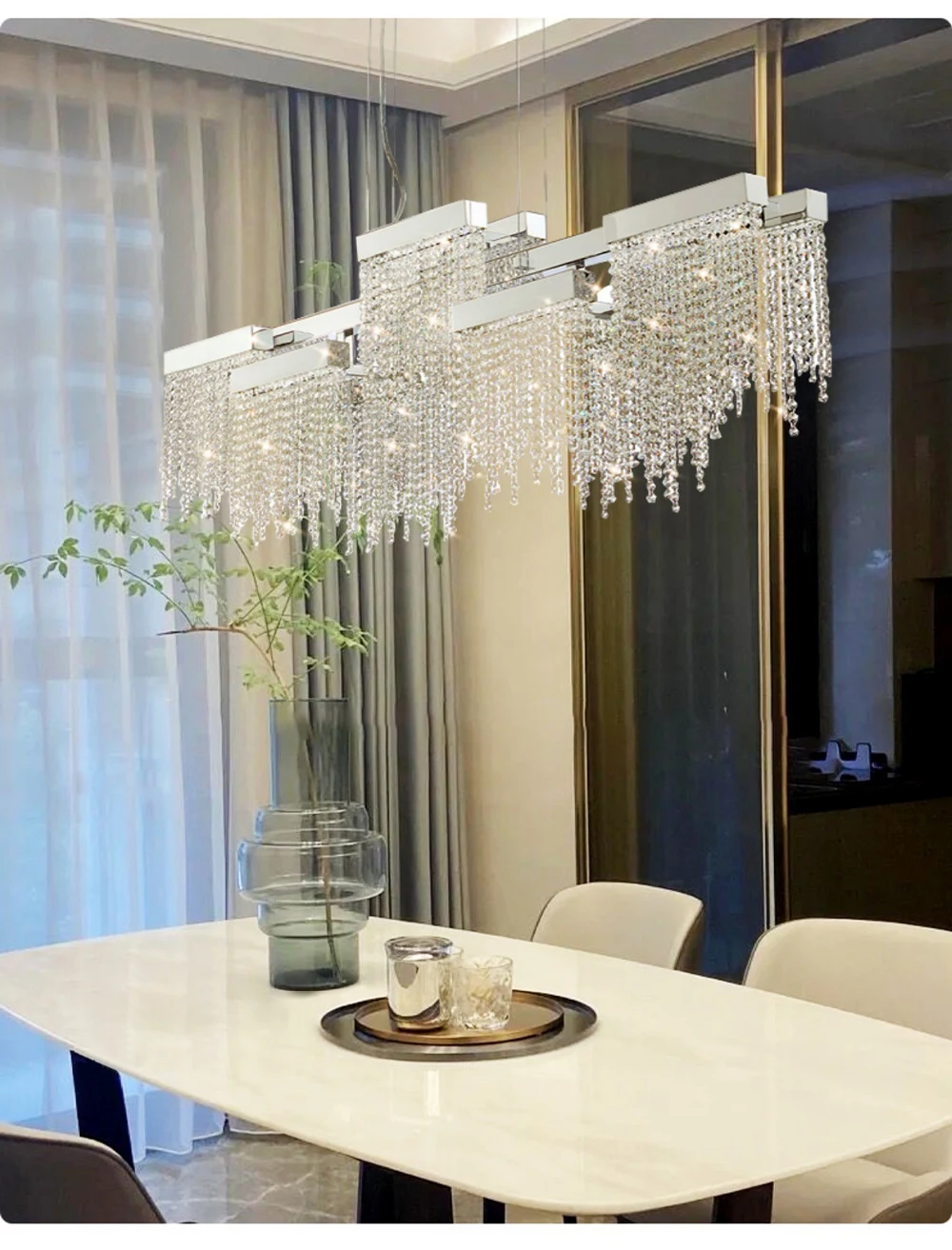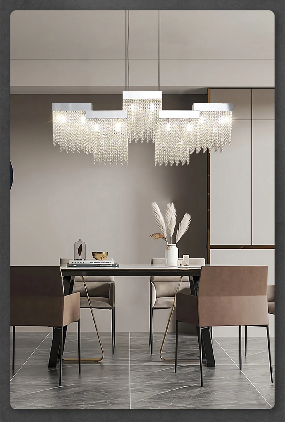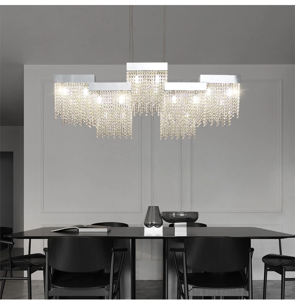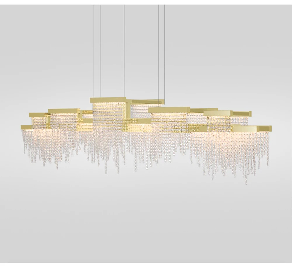 Artistical Luxury Crystal Tassel LED Ceiling Chandeliers Gold Lustre New Home Decoration Hanging Lamps for Dining Table Decor
