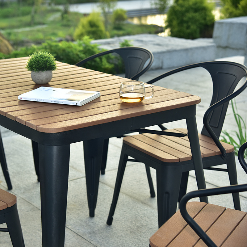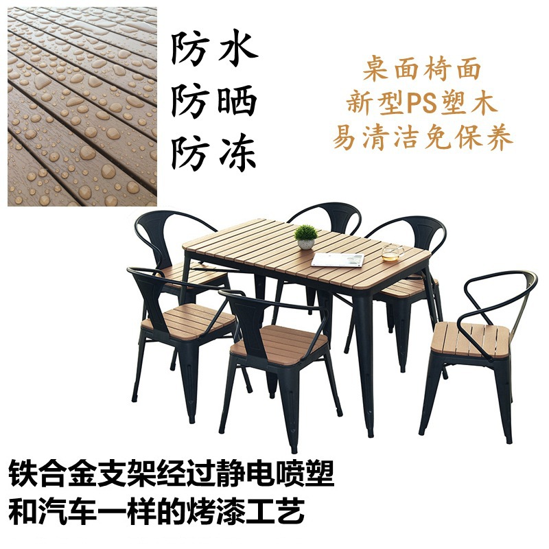 | 【产品名称】 | 新铁艺户外桌椅组合套装 啤酒奶茶店咖啡厅露台防腐塑木室外桌椅 | 【风格】 | 北欧 |