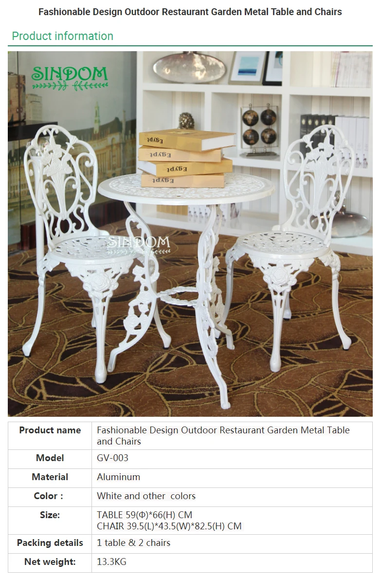 Sản phẩm nổi bật với các đặc điểm: Giải trí ngoài trời Ban công cao cấp Bàn ghế sân vườn Bộ bàn ghế. Quý khách có nhu cầu mua Bàn ghế sân vườn nhập khẩu vui lòng liên hệ với chúng tôi để được tư vấn hỗ trợ. Dịch vụ mua hàng Trung Quốc sẽ hỗ trợ quý khách mua hàng từ nhà cung cấp và giao tới tận tay quý khách hàng..Hình thức:Phong cách hiện đại Phong cách:Quốc gia Mỹ is_customized:No Số mô hình:GV-003 Loại kim loại:Nhôm Gấp:Không Chất liệu:Kim loại Xuất xứ:Trung Quốc đại lục Công dụng cụ thể:Bộ sân vườn Sử dụng chung:Nội thất ngoài trời Màu sắc:Trắng Nội dung:Một bàn và hai Nhiều cái ghế