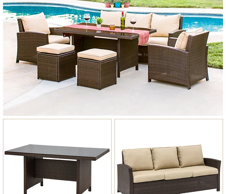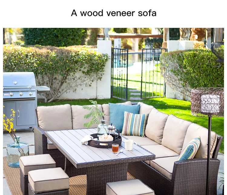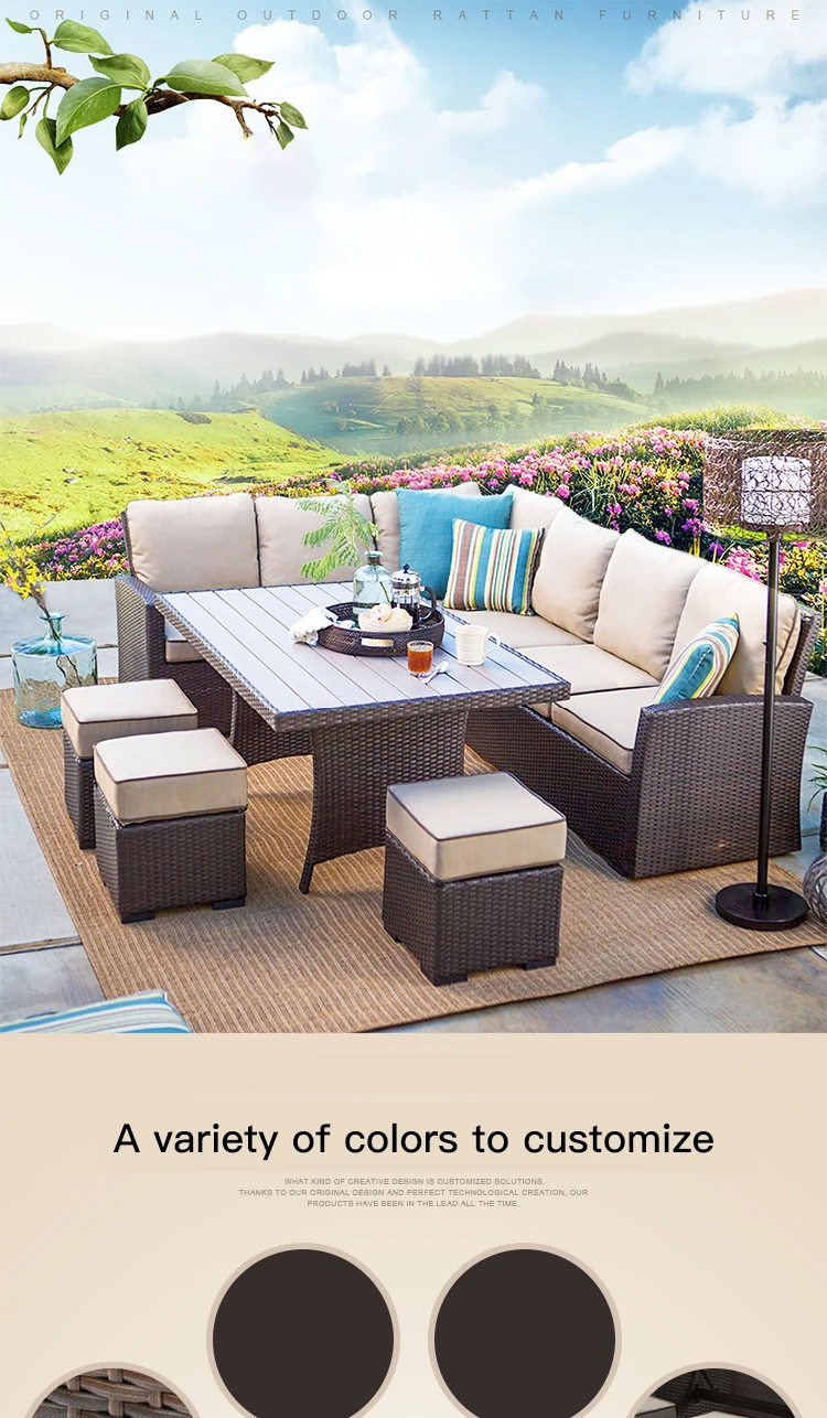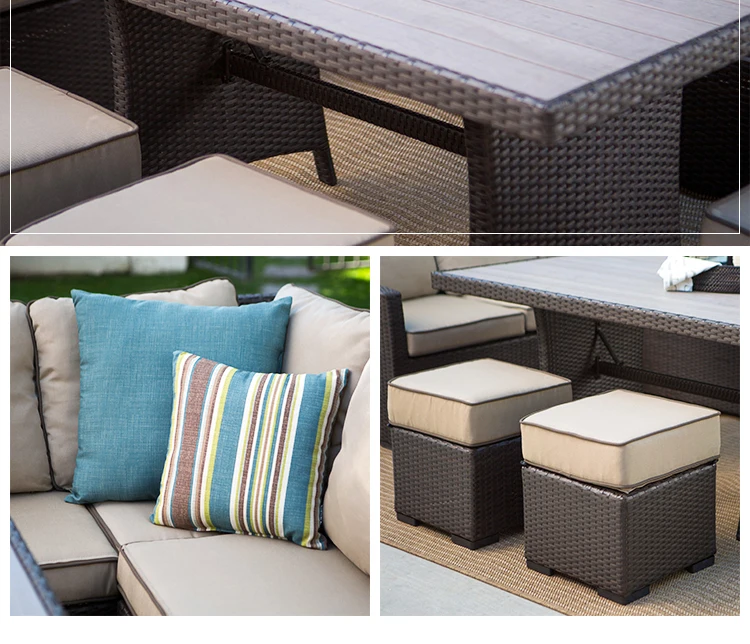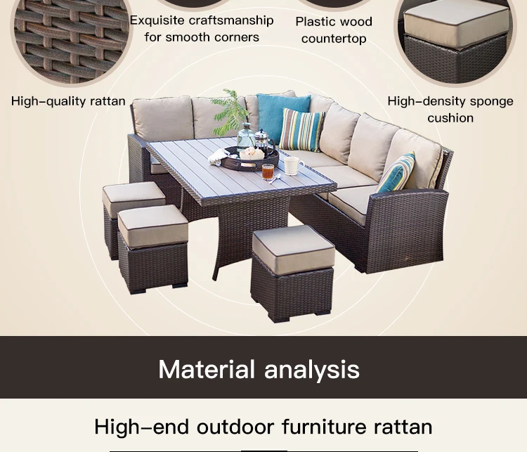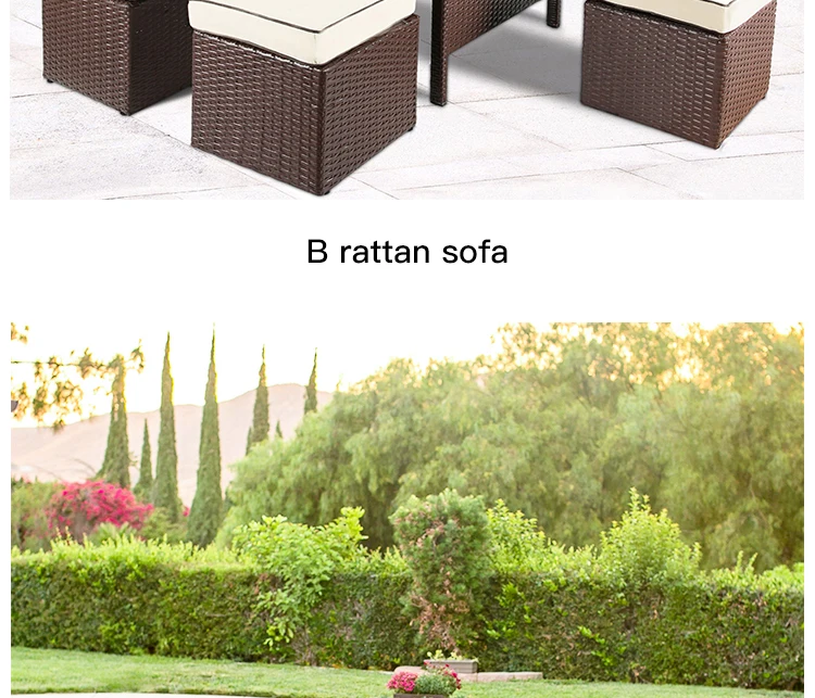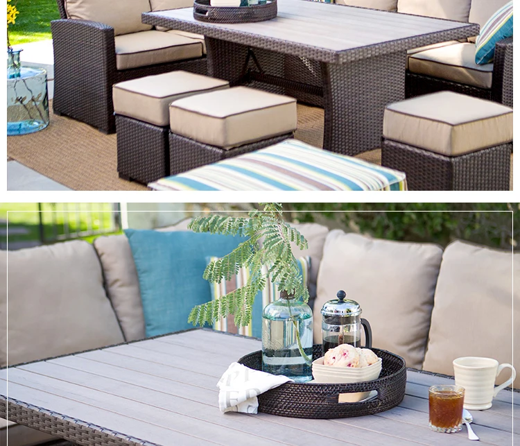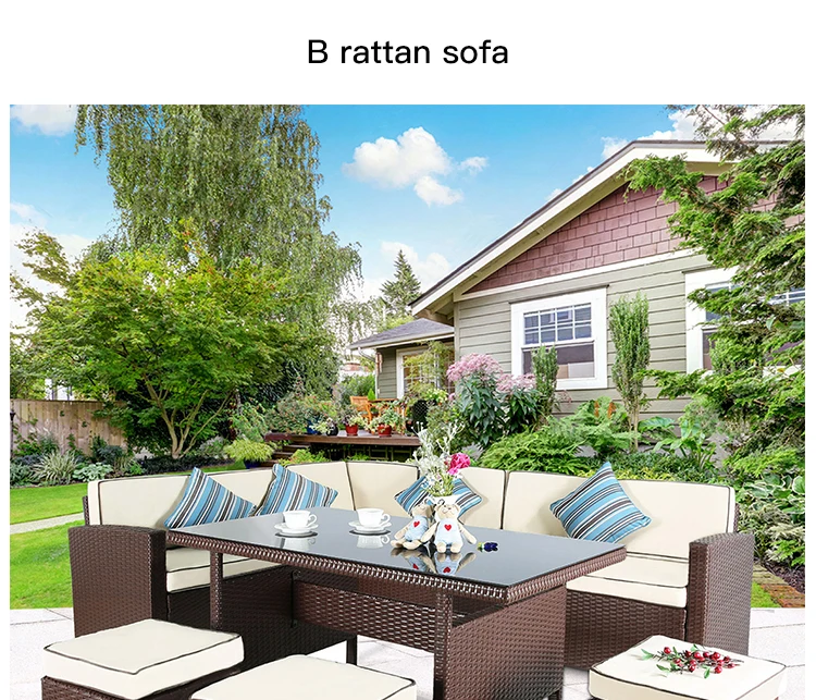 Ngoại thất sân vườn Kết hợp ghế sofa mây Phong cách Châu Âu cho sân ban công hiên có bàn cà phê Bộ bàn ghế sân vườn ngoài trời Ghế sofa góc giải trí là lựa chọn lý tưởng cho không gian công cộng, sân vườn hoặc khu đô thị. Sản phẩm giúp nâng cao hình ảnh chuyên nghiệp và sạch đẹp cho môi trường sống.