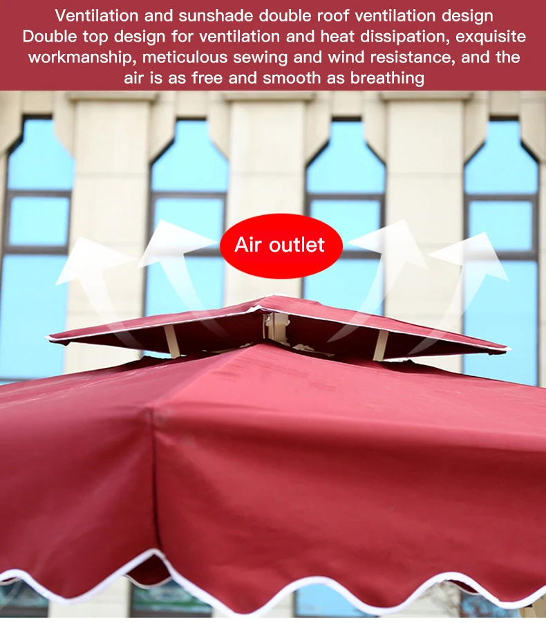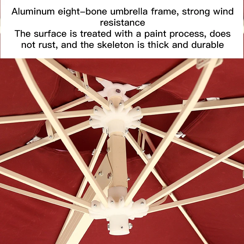 A. The outdoor umbrella uses a waterproof coating to penetrate the umbrella cloth, which will never fall off, can effectively prevent ultraviolet rays, storms, and is durable.