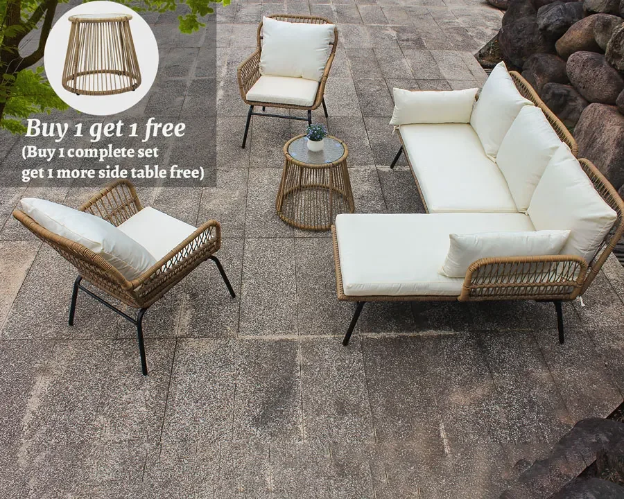 Modern Design : With clean lines contrasted perfectly by its round edges, the natural and beige color offers a sleek, minimalistic look. This rattan conversation set is the ideal modern accessory for your outdoor space.