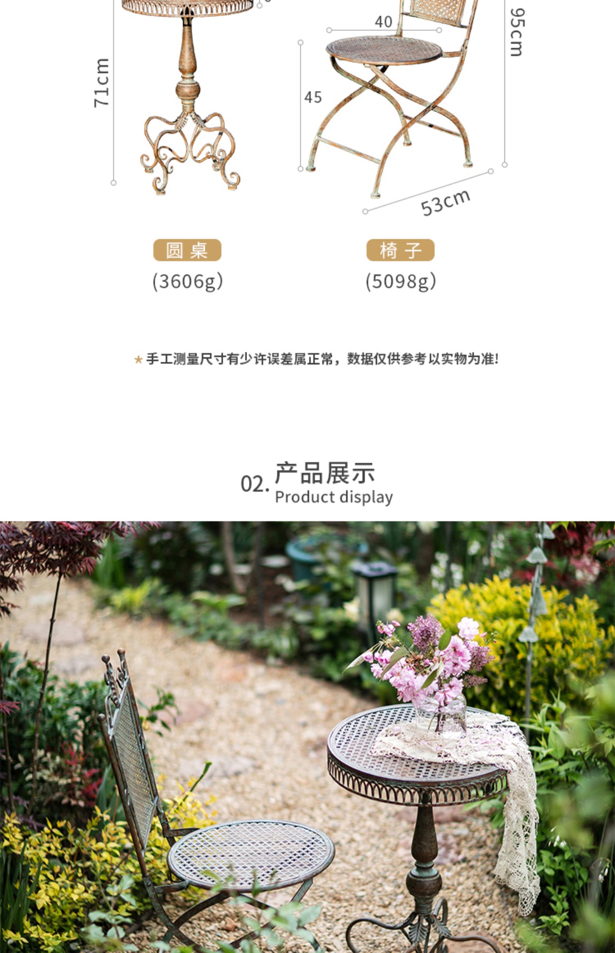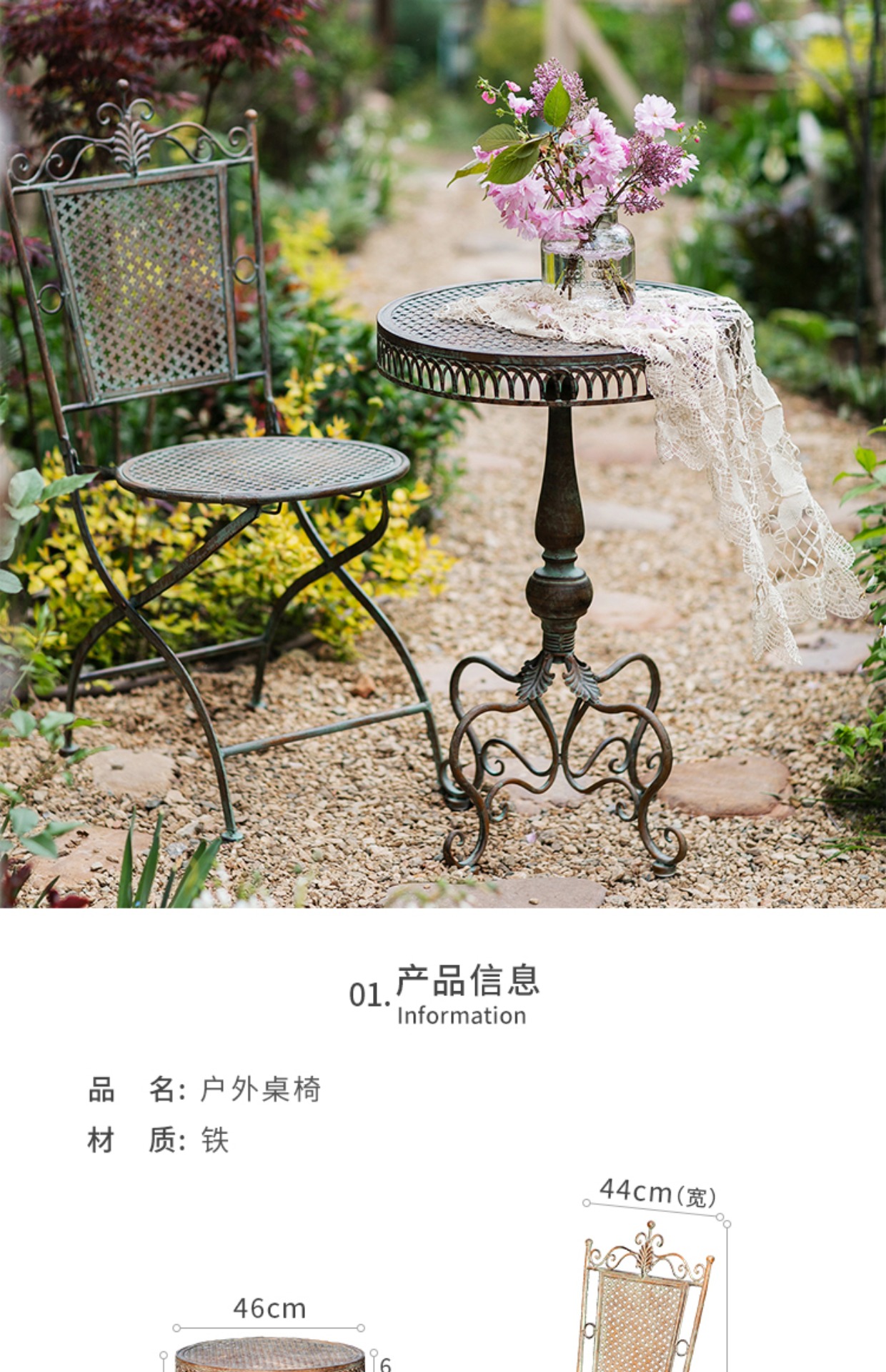 Ngoại thất sân vườn Pháp retro cũ ghế sắt sân gấp ngoài trời bàn ghế nhỏ nhà ban công sân vườn giải trí bàn tròn nhỏ là lựa chọn lý tưởng cho không gian công cộng, sân vườn hoặc khu đô thị. Sản phẩm giúp nâng cao hình ảnh chuyên nghiệp và sạch đẹp cho môi trường sống.