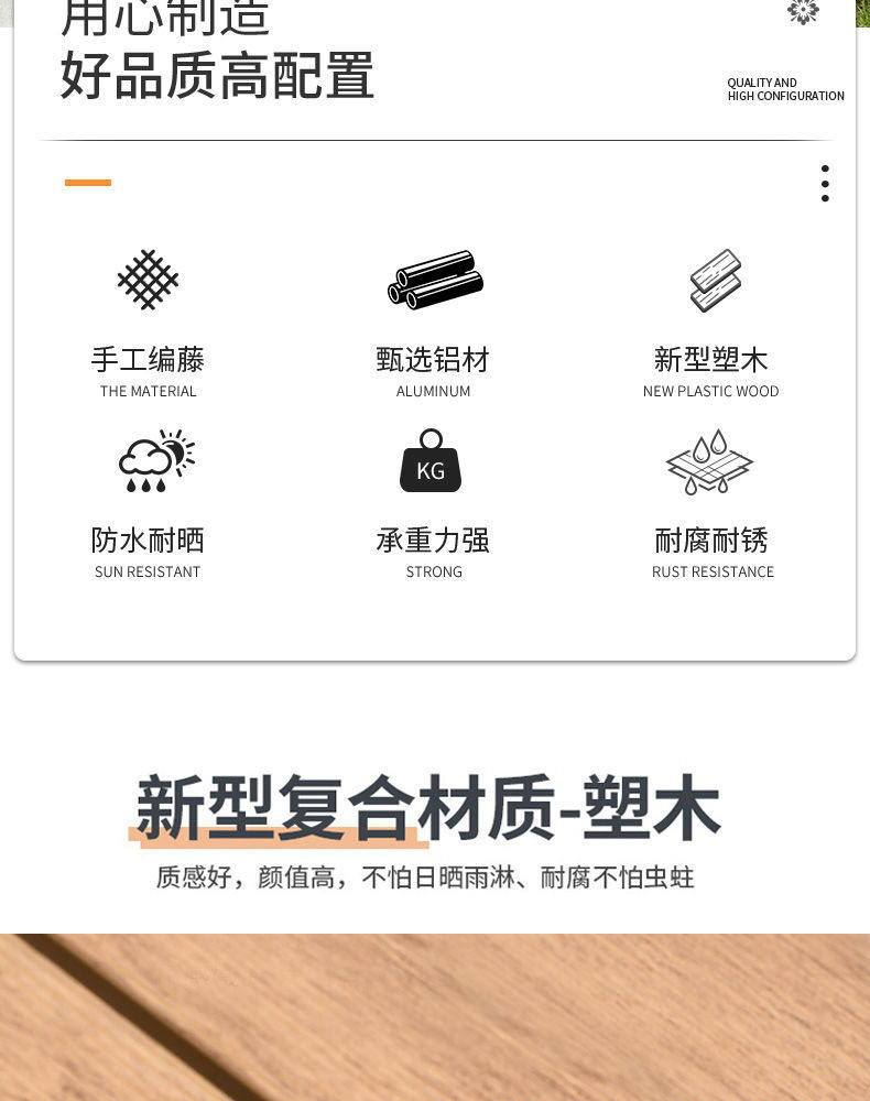 Ngoại thất sân vườn Phong cách Châu Âu ngoài trời ghế mây biệt thự ngoài trời cao cấp sân vườn nhựa gỗ đơn giản sân thượng giải trí kết hợp bàn ghế mây là lựa chọn lý tưởng cho không gian công cộng, sân vườn hoặc khu đô thị. Sản phẩm giúp nâng cao hình ảnh chuyên nghiệp và sạch đẹp cho môi trường sống.
