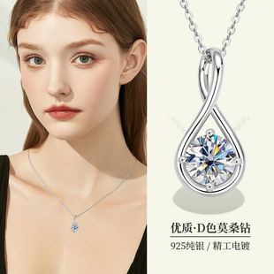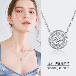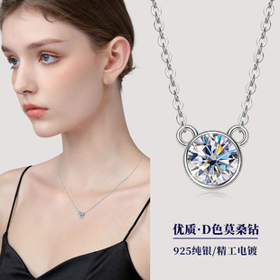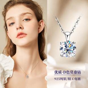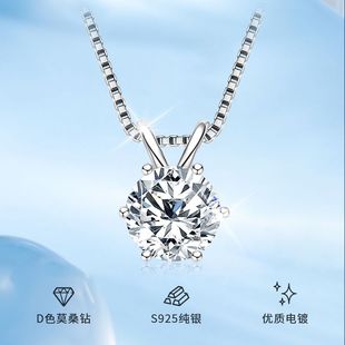 | 外贸经典六爪D色一克拉莫桑石项链女925纯银网红百搭吊坠饰品批发 |