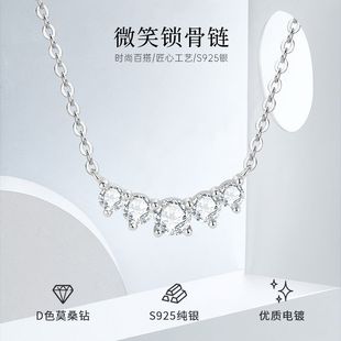 | 网红甜酷辣妹仙女风微笑项链女莫桑石小众锁骨链s925纯银吊坠批发 |